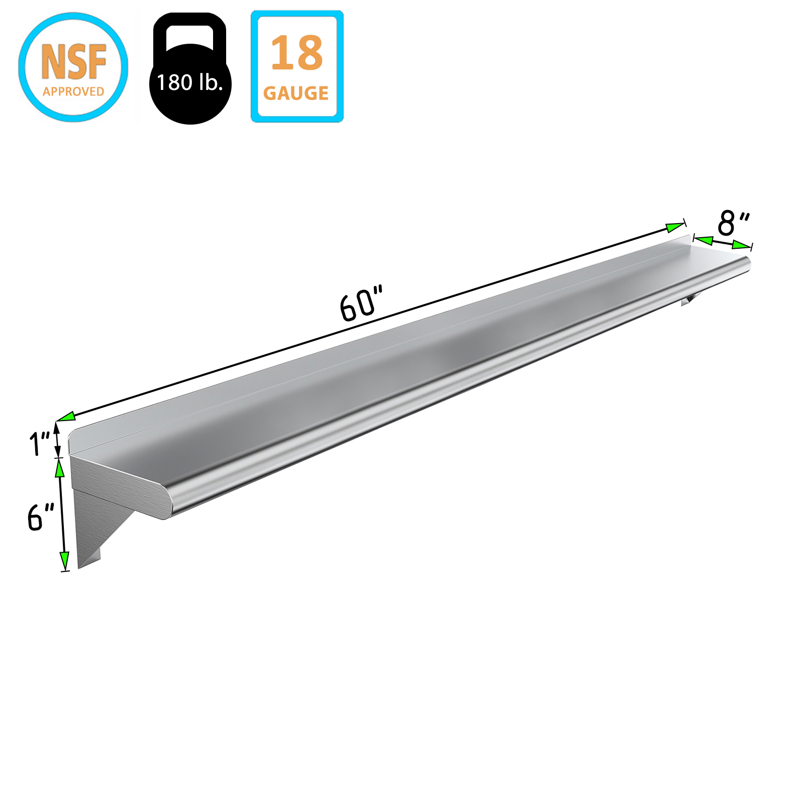 Installation is straightforward with the included mounting hardware, allowing you to securely attach the shelf to any wall surface. The smooth surface is easy to clean, making maintenance a breeze. Whether you need extra storage in your home or a reliable shelving option for your business, our 08″ X 60″ Stainless Steel Wall Mount Shelf is the ideal choice.