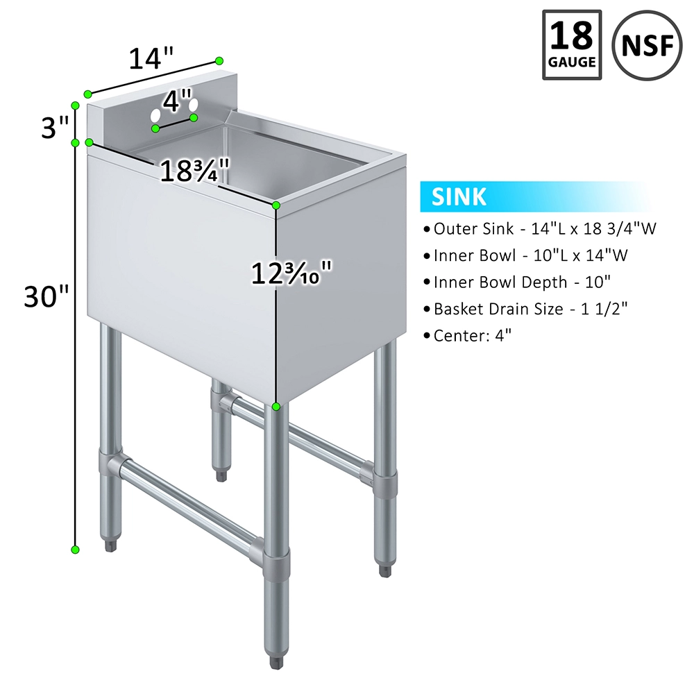 Measuring 10 inches by 14 inches with a 10-inch depth, this sink provides ample space for washing glassware, utensils, and small items without occupying excessive room. Its compact size makes it perfect for under-bar installations or tight spaces, allowing for seamless integration into bars, restaurants, or commercial kitchens where space is at a premium.