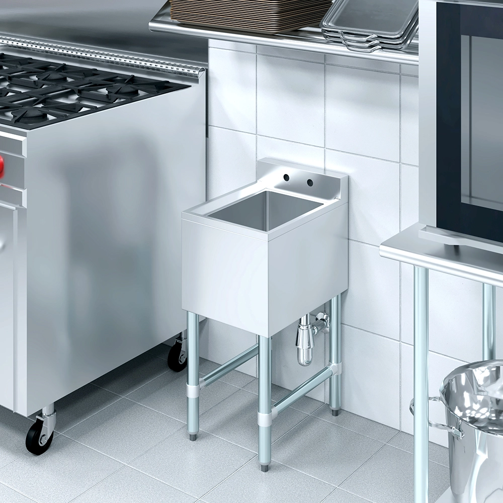 This one-compartment sink is ideal for busy service areas, providing a practical and efficient solution for quick cleaning tasks. Its durable construction and space-saving design make it a reliable addition to bars, cafes, or catering setups, where functionality and durability are essential.
