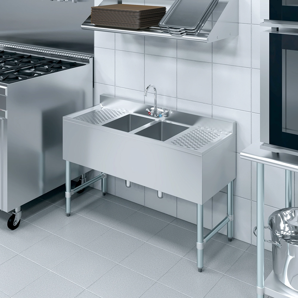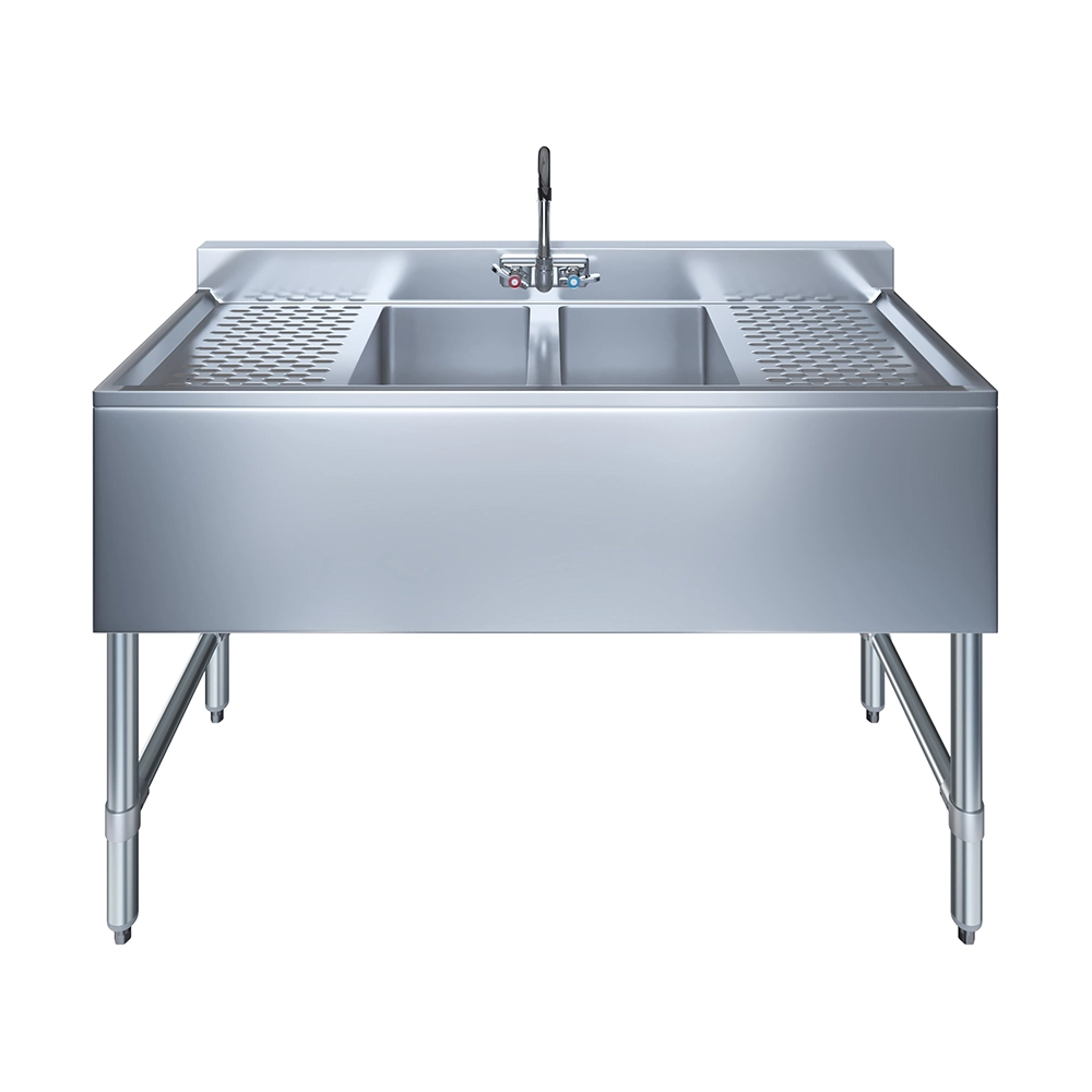Installation is straightforward, and the sink’s design integrates perfectly into any existing setup. Whether you are upgrading your current bar area or creating a new workspace, the 10″ X 14″ X 10″ Two Compartment Under Bar Sink with 12″ Left and Right Drainboards and Faucet is an excellent choice that combines durability, practicality, and style. Elevate your kitchen or bar with this indispensable piece of equipment, tailored to meet the demands of any busy environment.