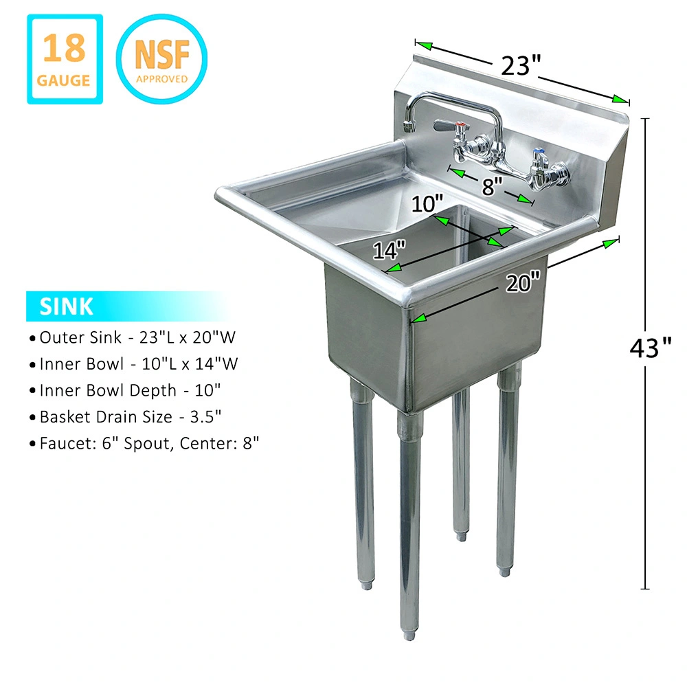 10″ X 14″ X 10″ with 10″ Left Drainboard with Faucet One Compartment Stainless Steel Commercial Prep & Utility Sink
