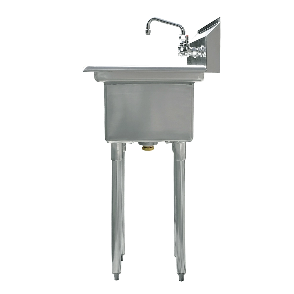 The sink features a spacious 10″ x 14″ compartment with a 10″ depth, providing ample room for a variety of tasks including washing, rinsing, and prepping. The single-compartment design is versatile and practical, making it ideal for restaurants, cafes, and other commercial settings where efficiency is key.