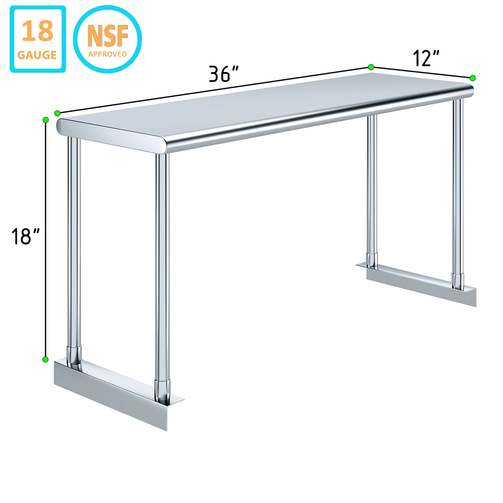 12 in. Deep x 36 in. Long Stainless Steel Single Tier Overshelf