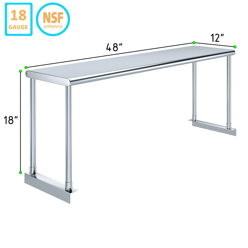 The 12 in. Deep x 48 in. Long Stainless Steel Single Tier Overshelf is a practical and durable storage solution designed to maximize efficiency in commercial kitchens. Constructed from 18GA/430 stainless steel, this overshelf is highly resistant to stains, and daily wear, ensuring long-lasting performance even in demanding food service environments. Its sleek and polished finish enhances cleanliness while maintaining a professional appearance.