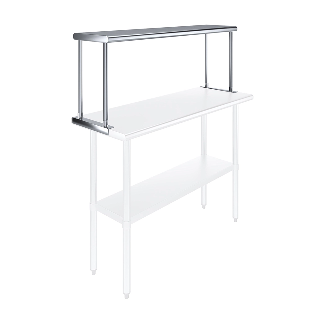 This single-tier overshelf provides additional storage space above prep tables, workstations, or countertops, keeping essential tools, ingredients, or small appliances within easy reach. Its sturdy construction supports heavy-duty use, making it ideal for restaurants, bakeries, catering businesses, and food service establishments.