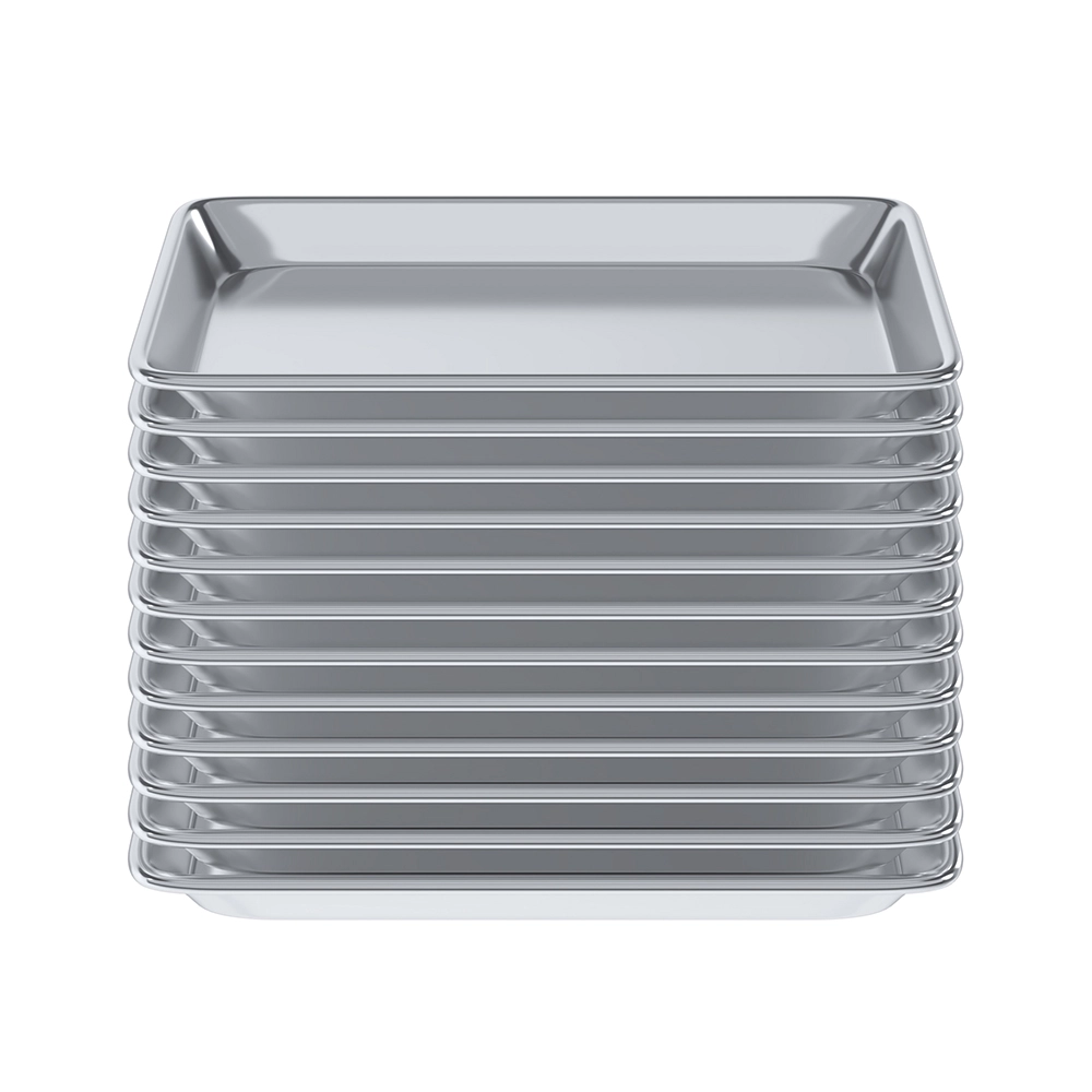 The smooth aluminum surface allows easy food release and quick cleanup, helping maintain productivity during busy service hours. Their compact quarter-size design is perfect for smaller ovens, food trucks, cafés, and limited-space kitchens while maintaining professional-grade reliability. Sold as a pack of 12, these pans support multitasking and high-volume production, making them an excellent choice for bakeries, restaurants, catering services, and serious home bakers seeking long-lasting, efficient bakeware.