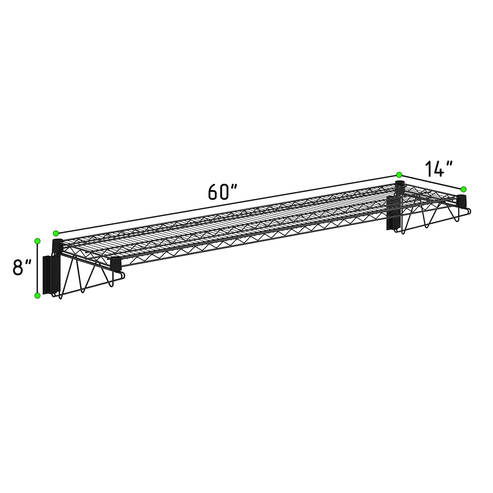 14 in. x 60 in. Black Epoxy Wall Mount Wire Shelf With Brackets