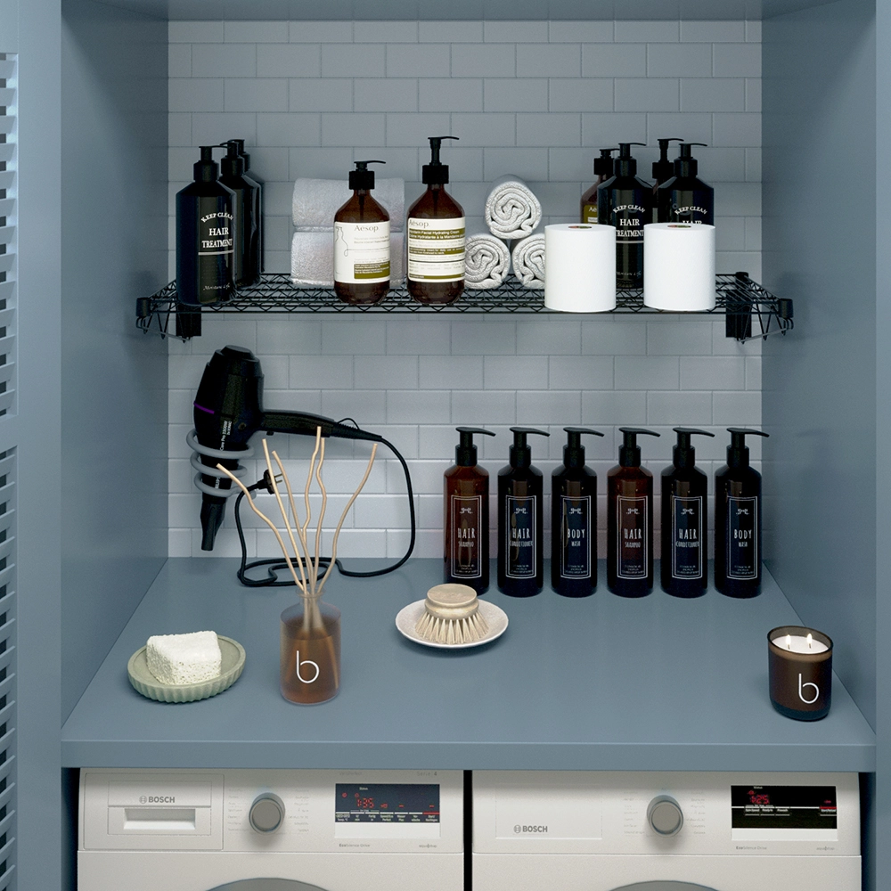 Designed for easy installation, the shelf includes all necessary mounting hardware. Whether used in homes or commercial environments, this space-saving wire shelf enhances organization while maintaining a clean, streamlined look