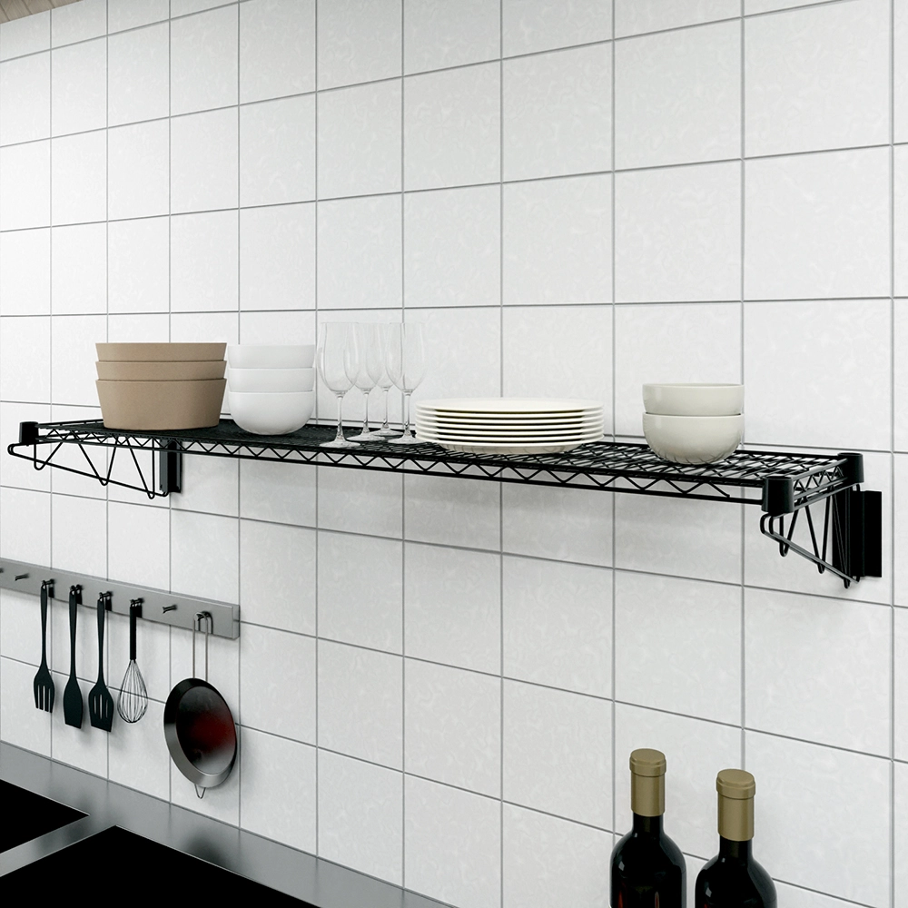 The 14 in. x 60 in. Black Epoxy Wall Mount Wire Shelf is a versatile and durable storage solution designed to optimize space in kitchens, pantries, garages, laundry rooms, and commercial settings. Made from high-quality steel, it features a black epoxy-coated finish that resists rust, corrosion, and wear, ensuring long-term durability. The open-wire design promotes air circulation, preventing dust buildup and keeping stored items fresh and clean.