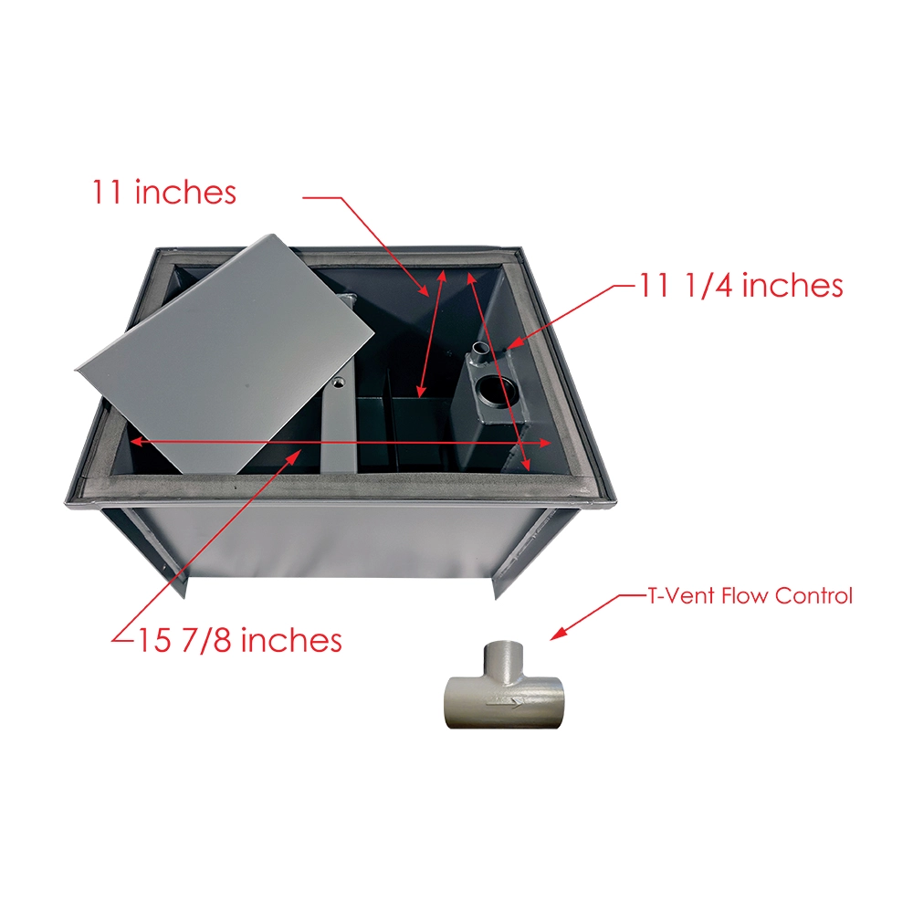 Internal baffles and flow control design maximize grease capture while maintaining steady flow. Easy to service and keeps plumbing clear of clogs.