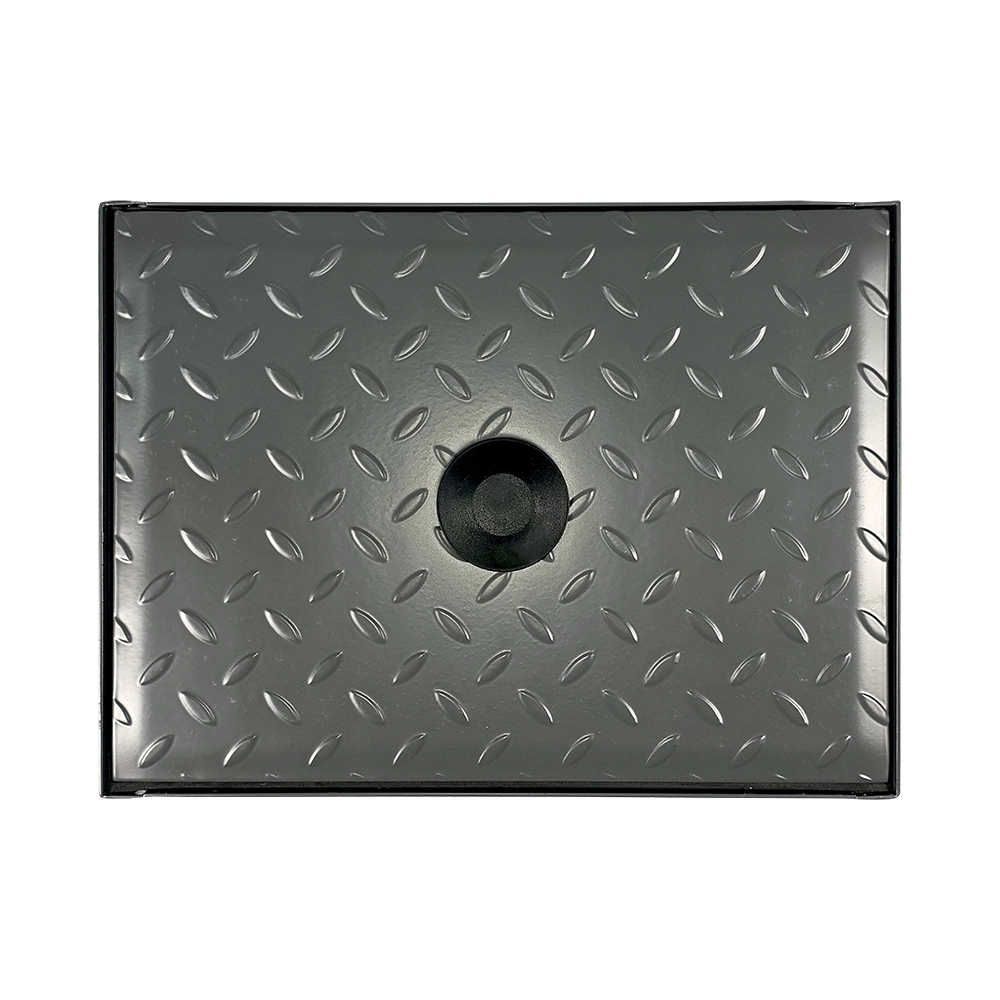 Diamond plate cover with a center bolt ensures a tight seal. Keeps unpleasant odors contained and maintains a clean, professional environment.