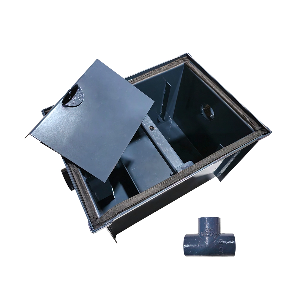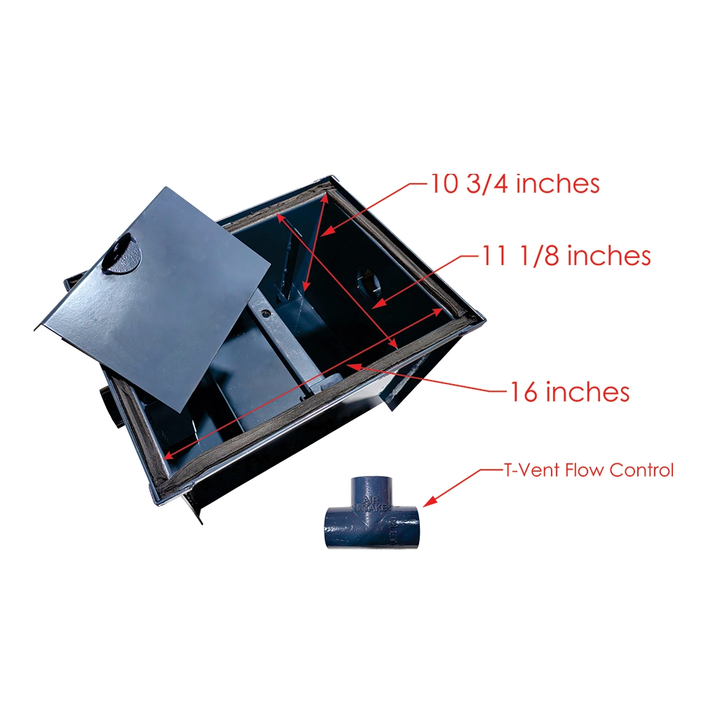 Internal baffles and flow control design maximize grease capture while maintaining steady flow. Easy to service and keeps plumbing clear of clogs.