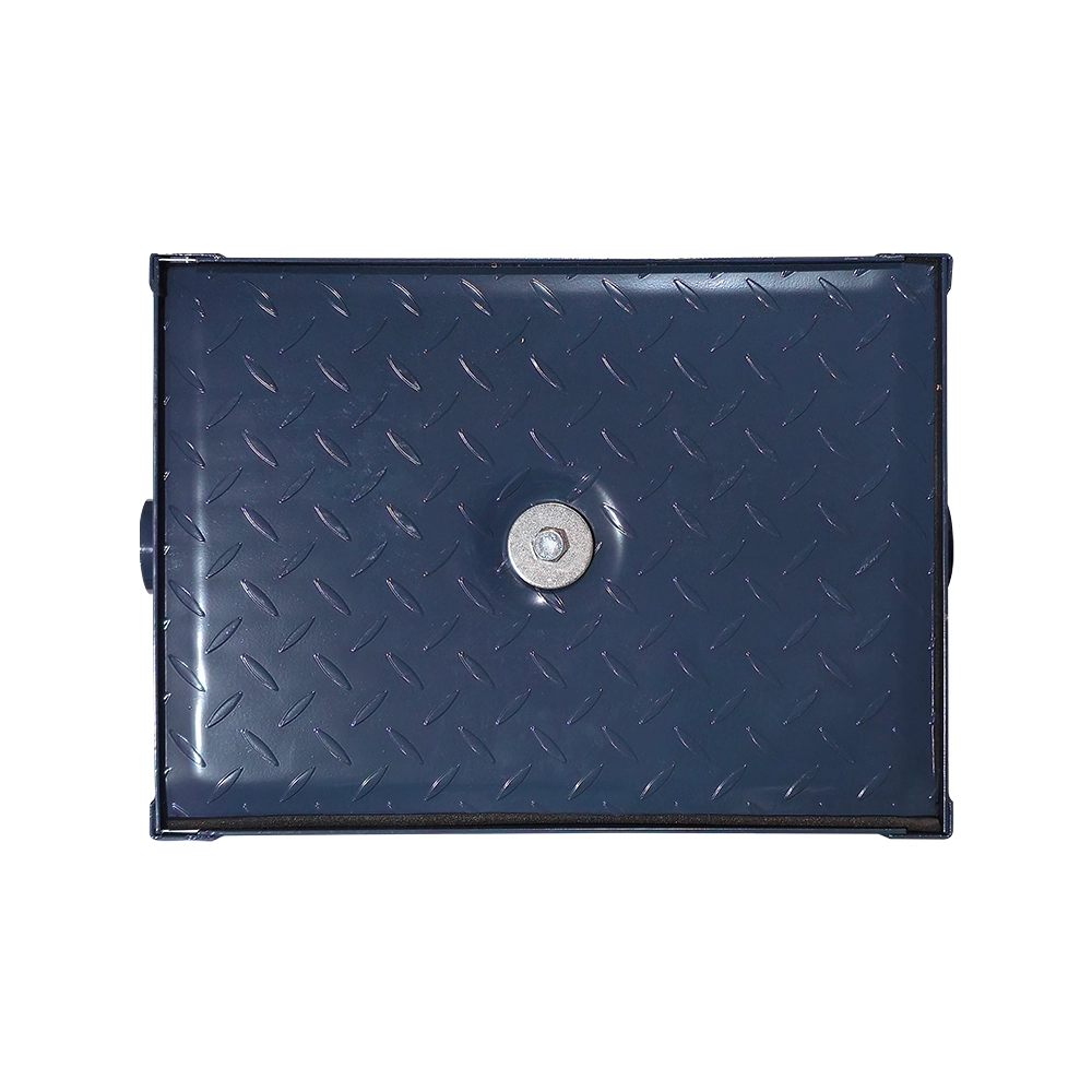 Diamond plate cover with a center bolt ensures a tight seal. Keeps unpleasant odors contained and maintains a clean, professional environment.