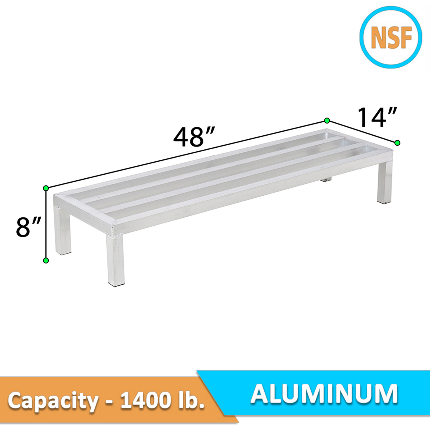 Introducing the 14″ Wide x 48″ Length x 8″ Height Aluminum Dunnage Rack, a premium storage solution designed to enhance the efficiency and organization of your commercial kitchen, warehouse, or storage room. Constructed from aluminum, this dunnage rack is built to last, offering exceptional, making it ideal for environments where durability and hygiene are paramount.