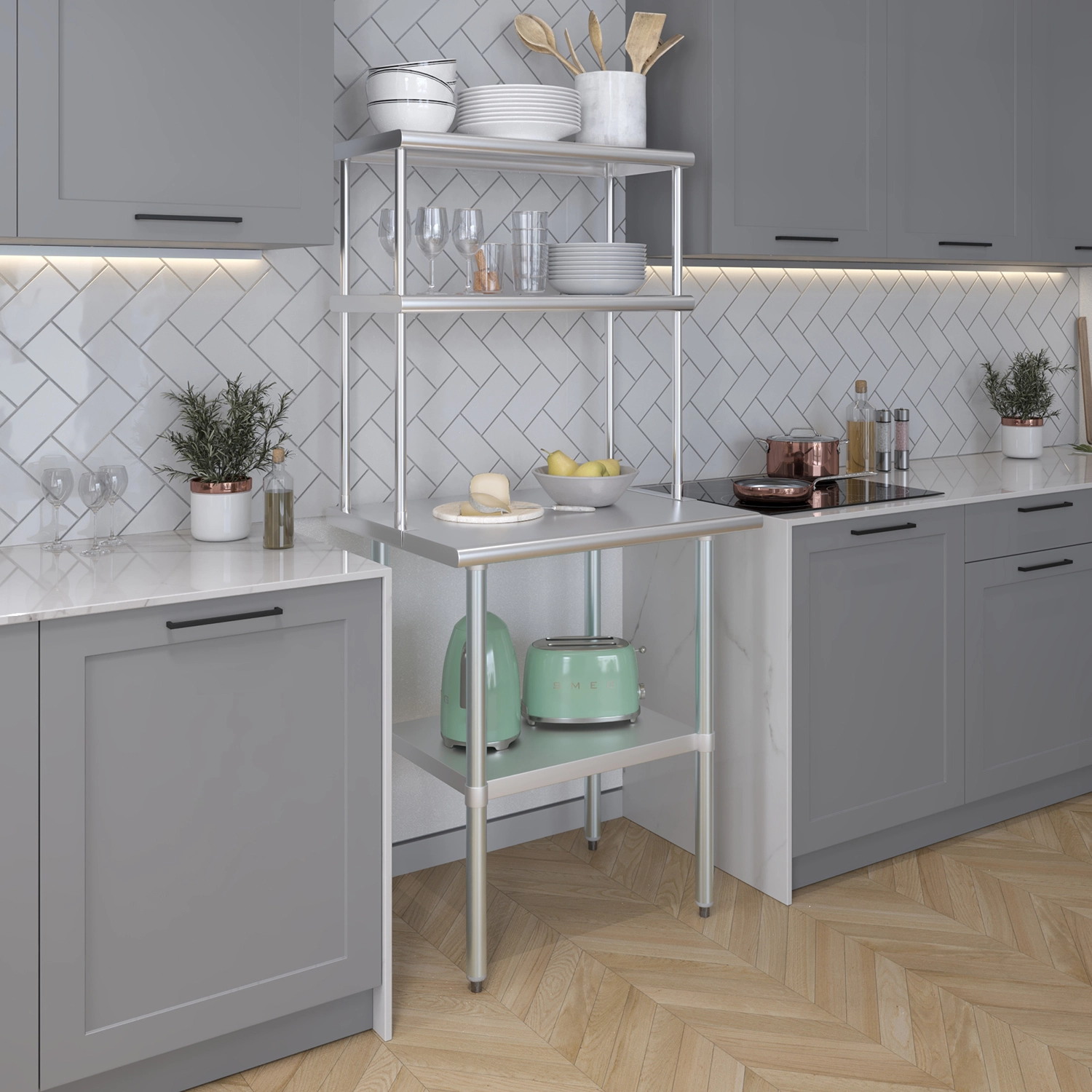 The sleek, modern appearance of the stainless steel not only adds a touch of professionalism to your workspace but also ensures easy cleaning and maintenance. The smooth surface can be quickly wiped down, maintaining a hygienic and tidy kitchen environment. Its polished finish complements any decor, seamlessly integrating into various settings.
