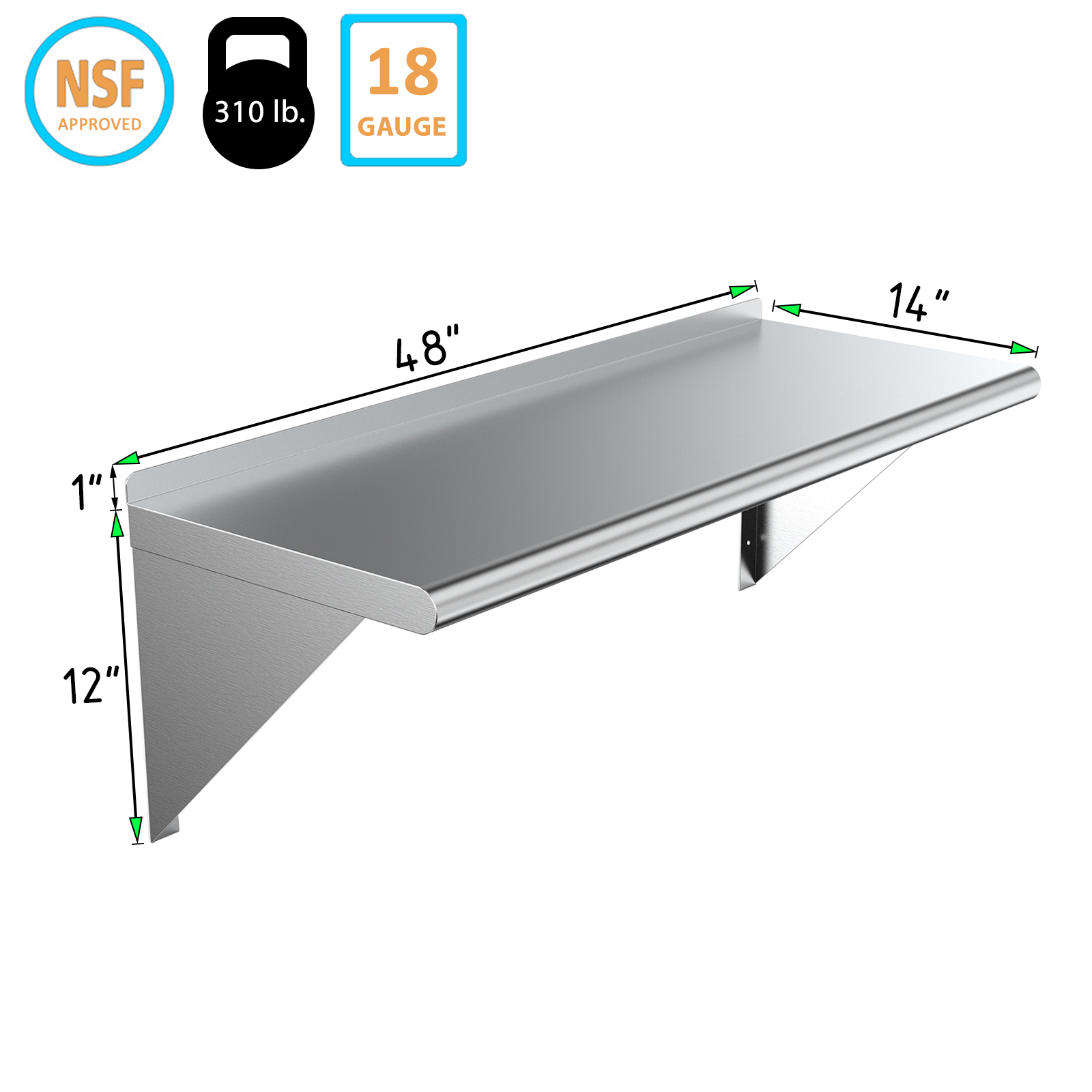 Installation is straightforward with the included mounting hardware, allowing you to securely attach the shelf to any wall surface. The smooth surface is easy to clean, making maintenance a breeze. Whether you need extra storage in your home or a reliable shelving option for your business, our 14″ X 48″ Stainless Steel Wall Mount Shelf is the ideal choice.