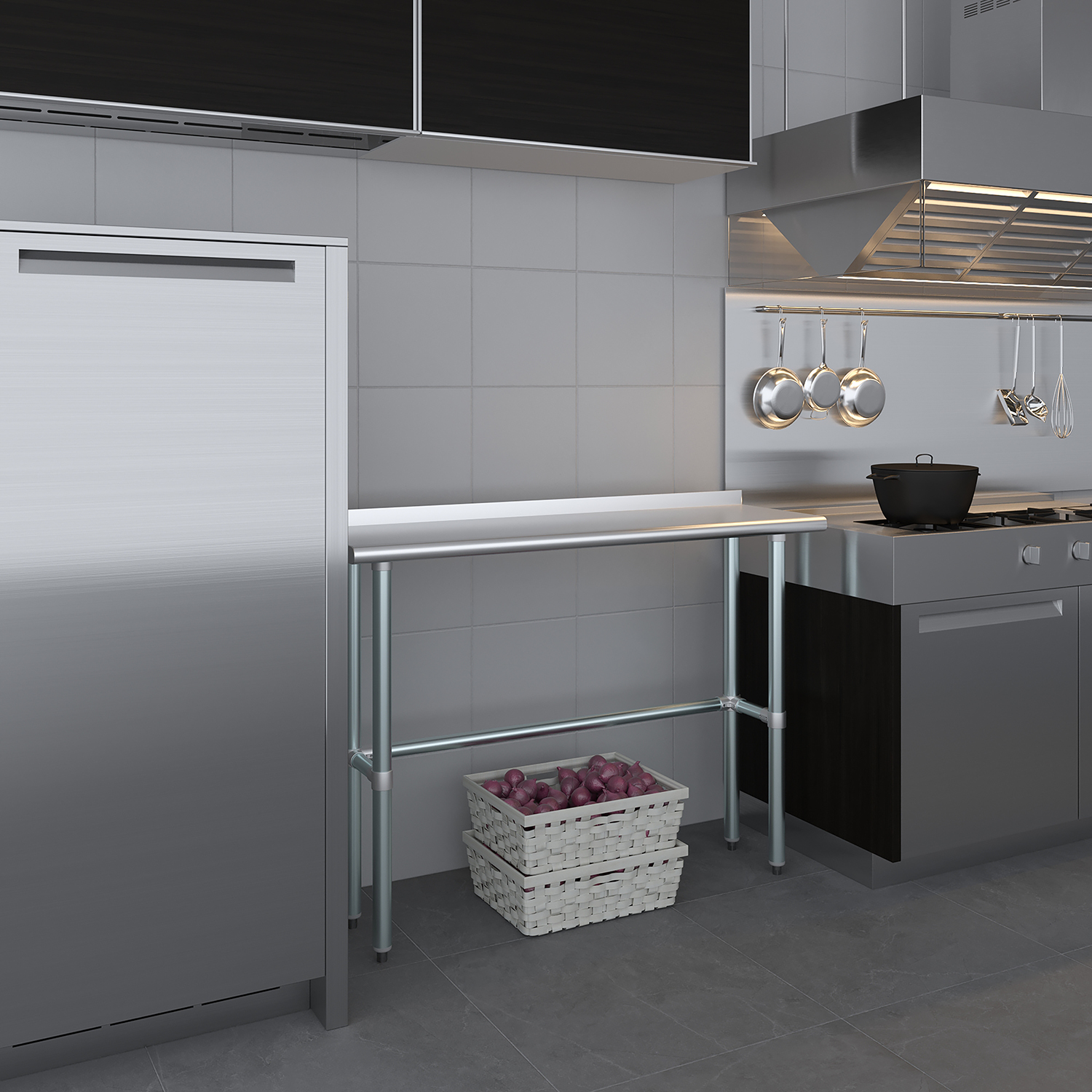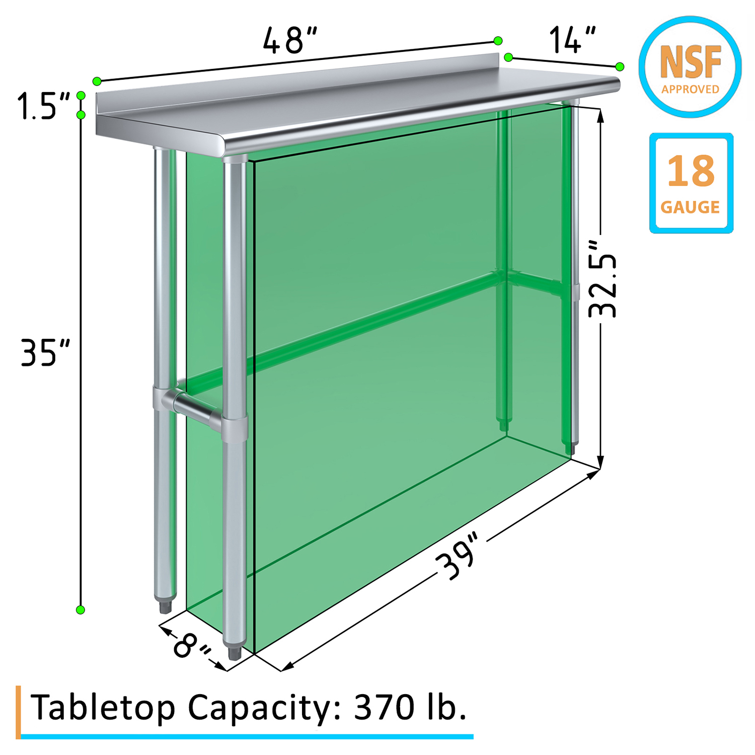 The 1.5″ backsplash is designed to contain spills and splashes, protecting your walls and maintaining a clean and sanitary work area. This feature is especially useful in food preparation settings, where hygiene is paramount. The sleek, smooth surface of the table allows for effortless cleaning, helping you maintain high standards of cleanliness with minimal effort.