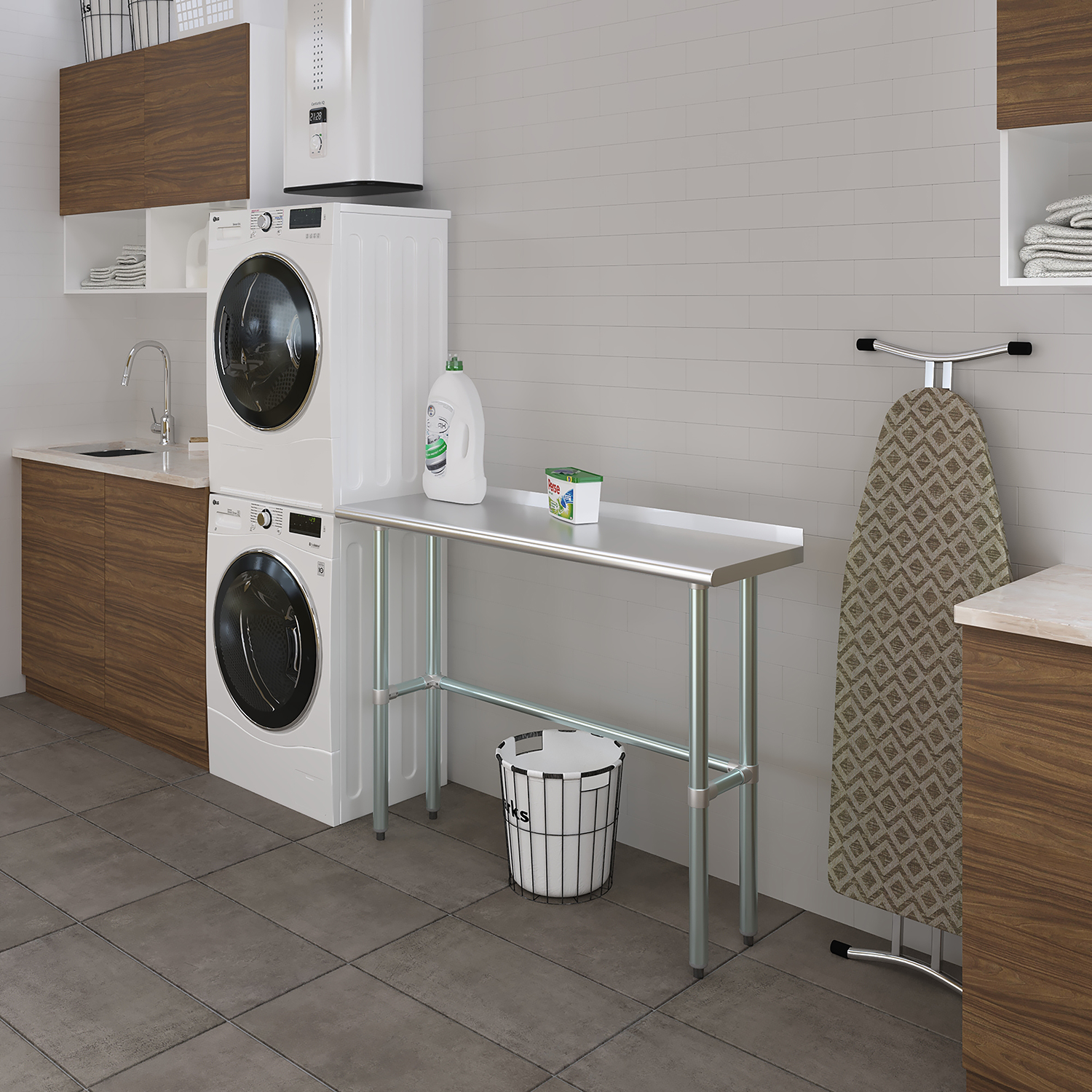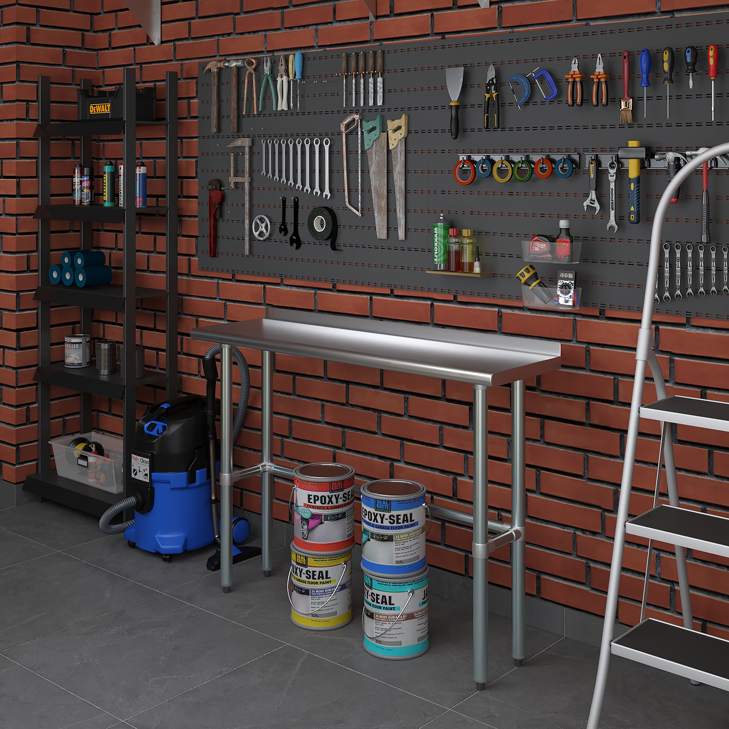 Measuring 14 inches by 48 inches, this work table provides an extended workspace that accommodates a variety of tasks. The generous length offers ample space for food preparation, assembly work, experiments, and other detailed projects. Despite its extensive size, the table maintains a compact design that fits well into different settings without occupying excessive space.