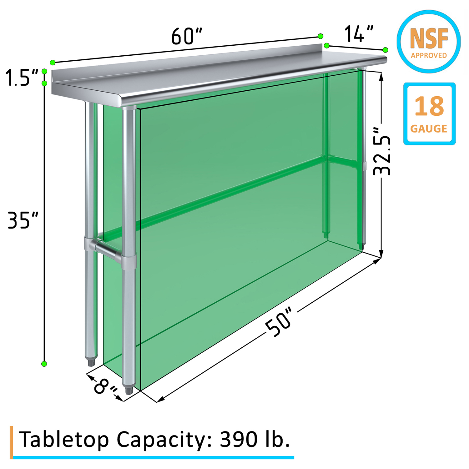14″ X 60″ Stainless Steel Work Table Open Base with 1.5″ Backsplash