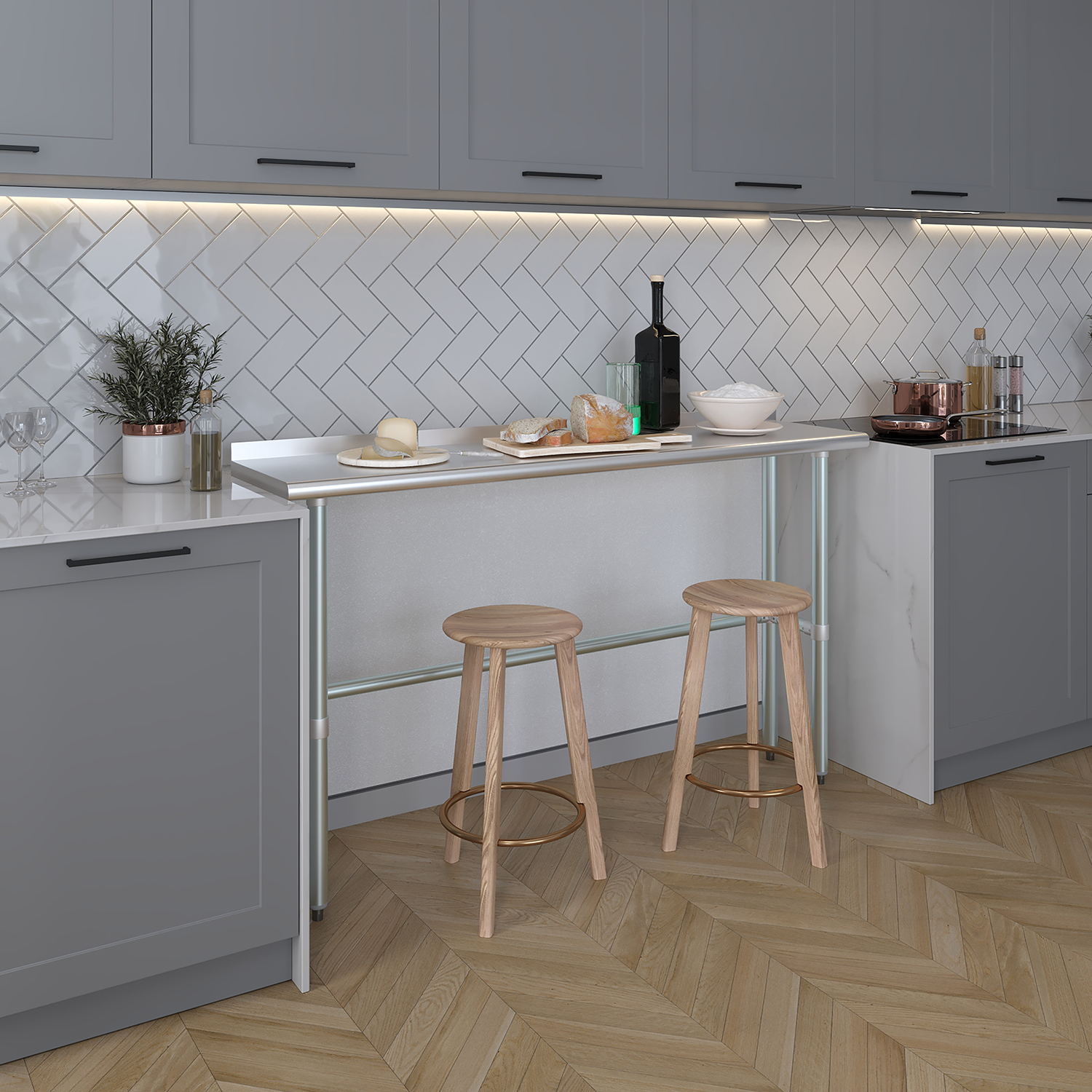 Measuring 14 inches by 48 inches, this work table provides an extended workspace that accommodates a variety of tasks. The generous length offers ample space for food preparation, assembly work, experiments, and other detailed projects. Despite its extensive size, the table maintains a compact design that fits well into different settings without occupying excessive space.