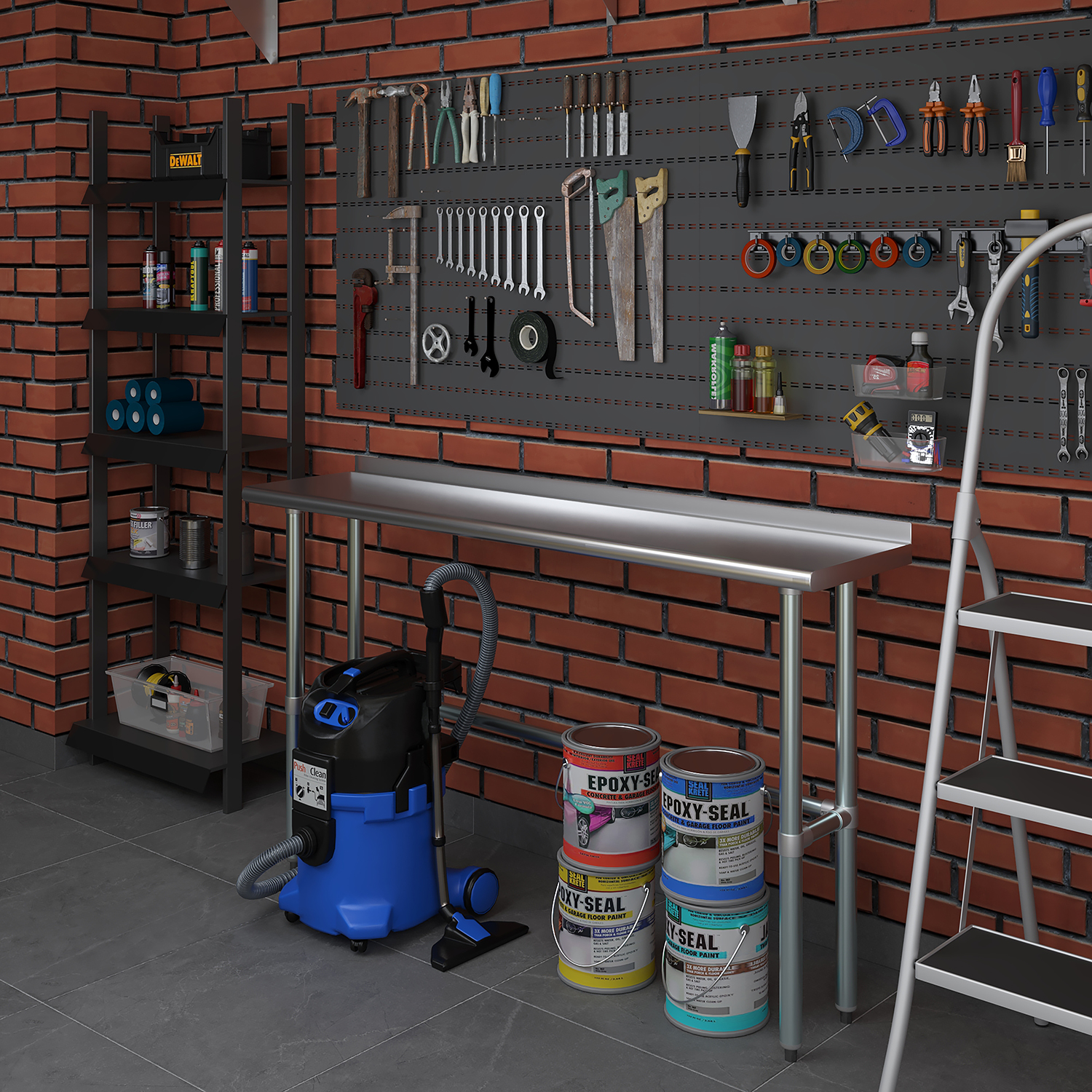 The 1.5″ backsplash is designed to contain spills and splashes, protecting your walls and maintaining a clean and sanitary work area. This feature is especially useful in food preparation settings, where hygiene is paramount. The sleek, smooth surface of the table allows for effortless cleaning, helping you maintain high standards of cleanliness with minimal effort.