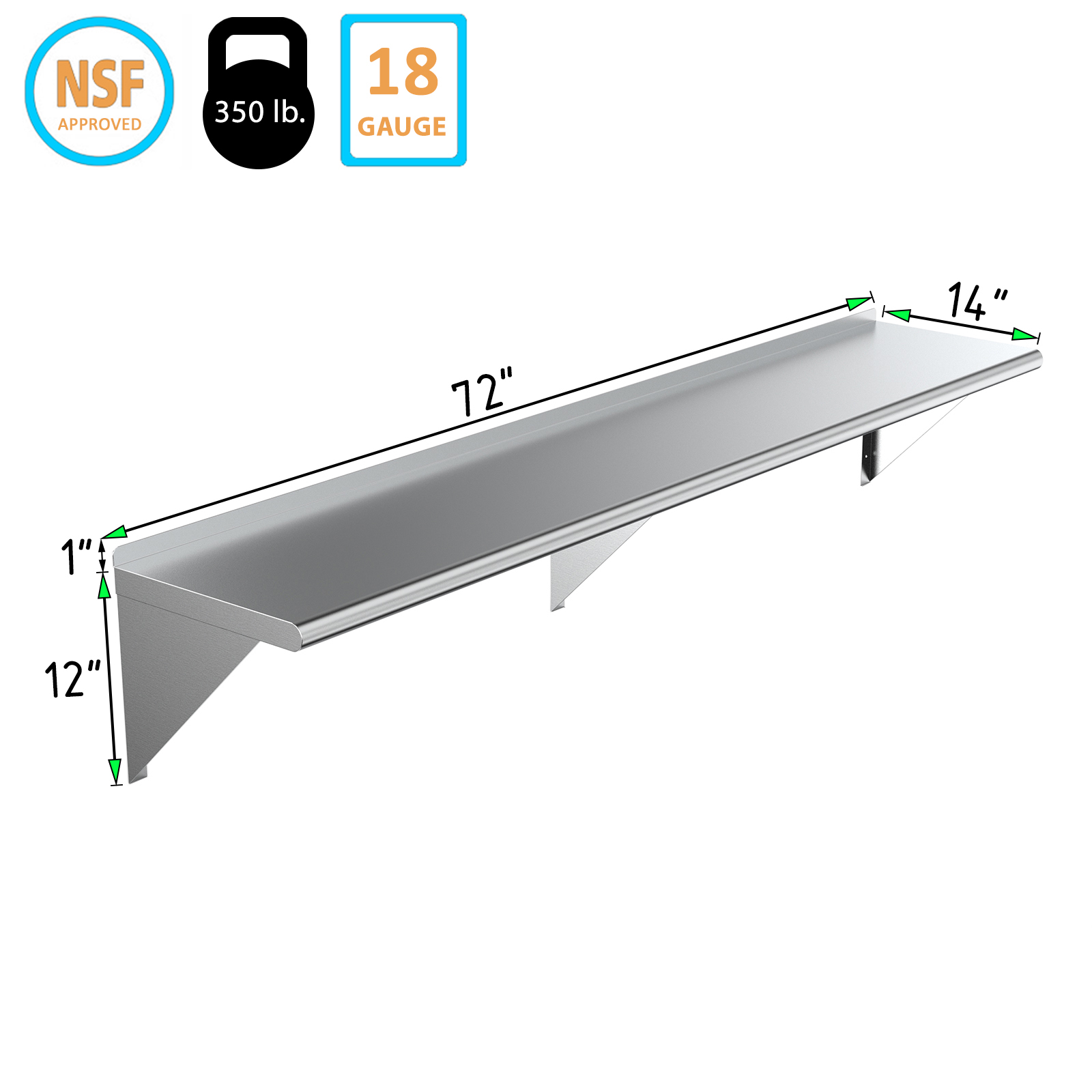 14″ X 72″ Stainless Steel Wall Mount Shelf