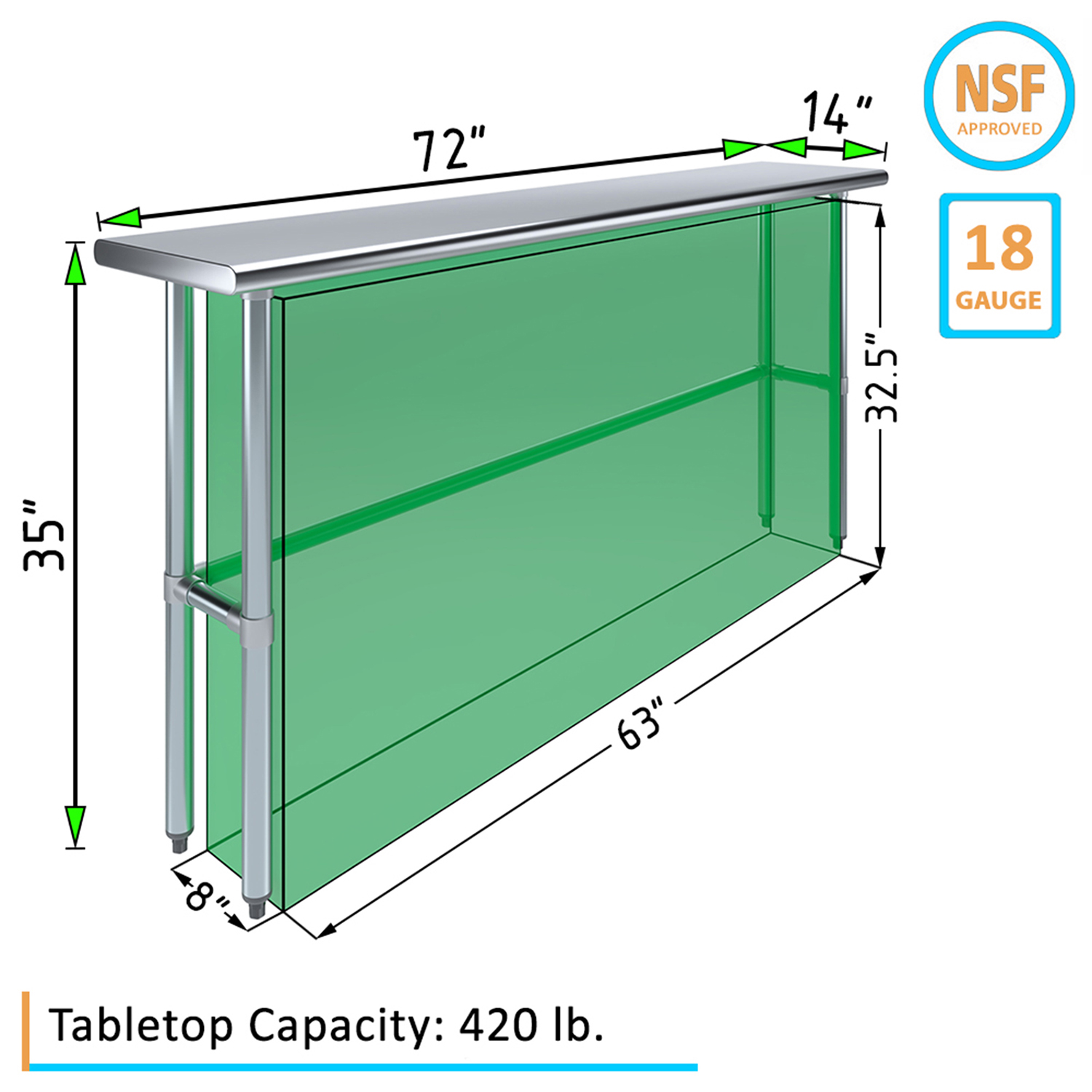 Measuring 14 inches by 72 inches, this work table offers a compact footprint that fits seamlessly into smaller spaces while still providing ample workspace for your projects. The clean, modern design complements any setting, adding a touch of professionalism to your environment. Whether you’re slicing ingredients in a busy kitchen, assembling components in a workshop, or conducting experiments in a lab, this stainless steel work table is a reliable and stylish addition to your workspace.