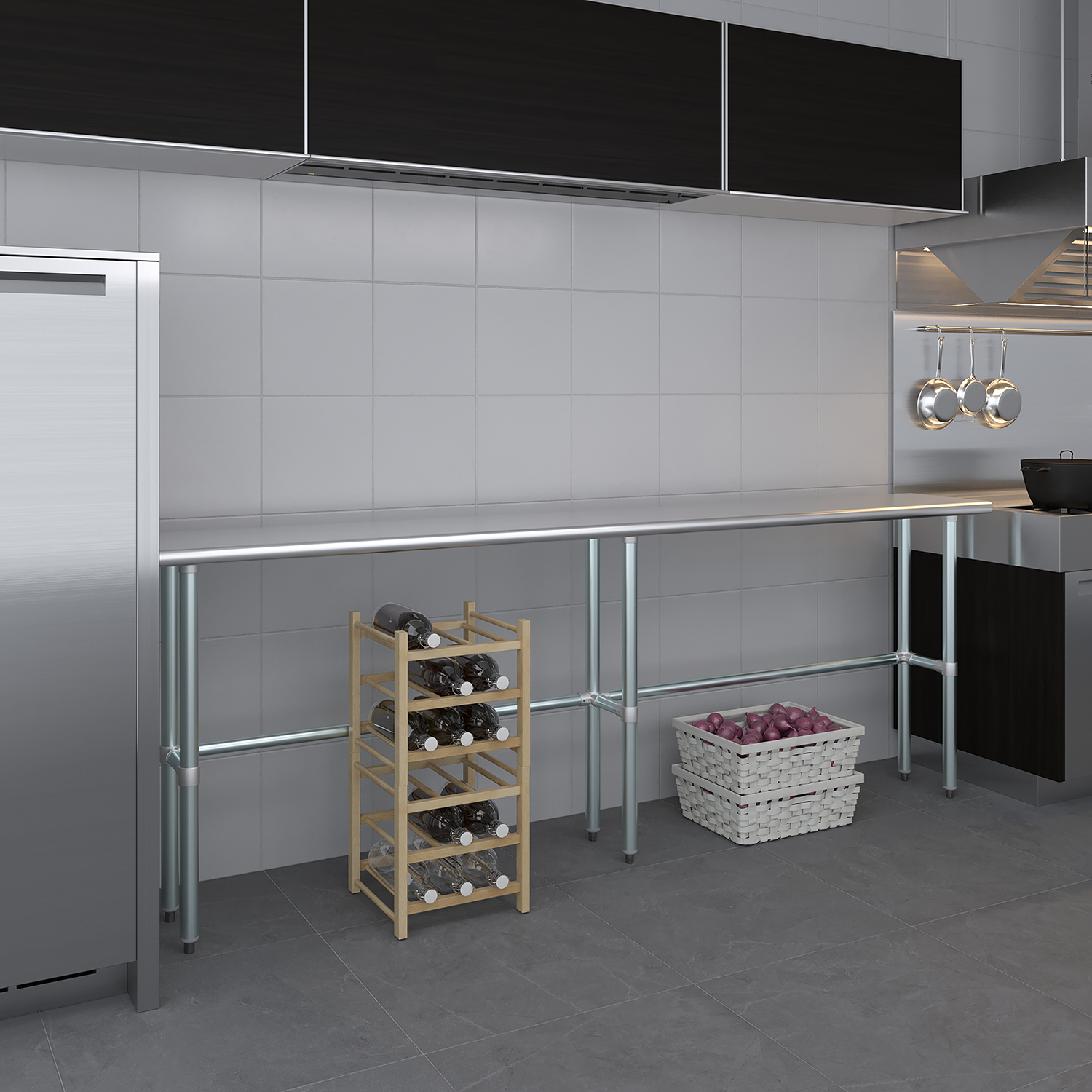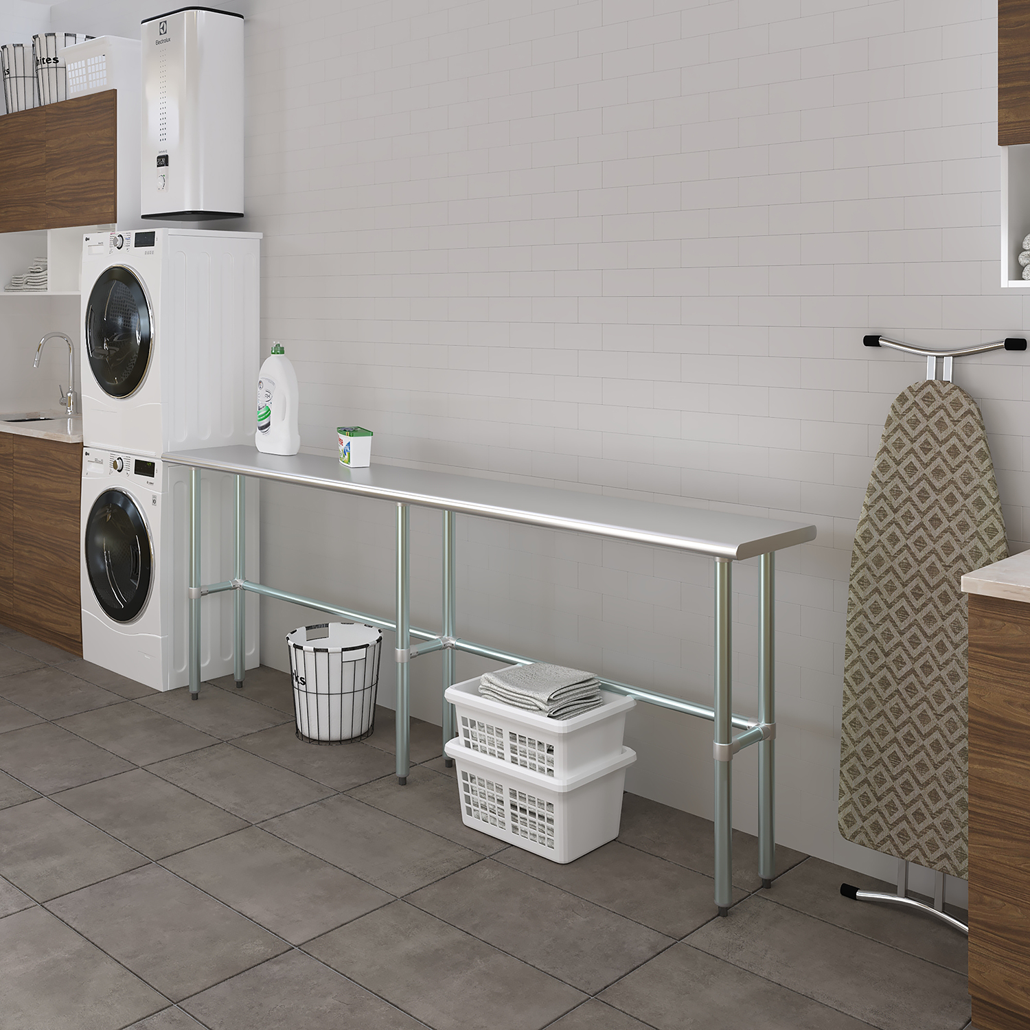 Measuring 14 inches by 96 inches, this work table offers a compact footprint that fits seamlessly into smaller spaces while still providing ample workspace for your projects. The clean, modern design complements any setting, adding a touch of professionalism to your environment. Whether you’re slicing ingredients in a busy kitchen, assembling components in a workshop, or conducting experiments in a lab, this stainless steel work table is a reliable and stylish addition to your workspace.