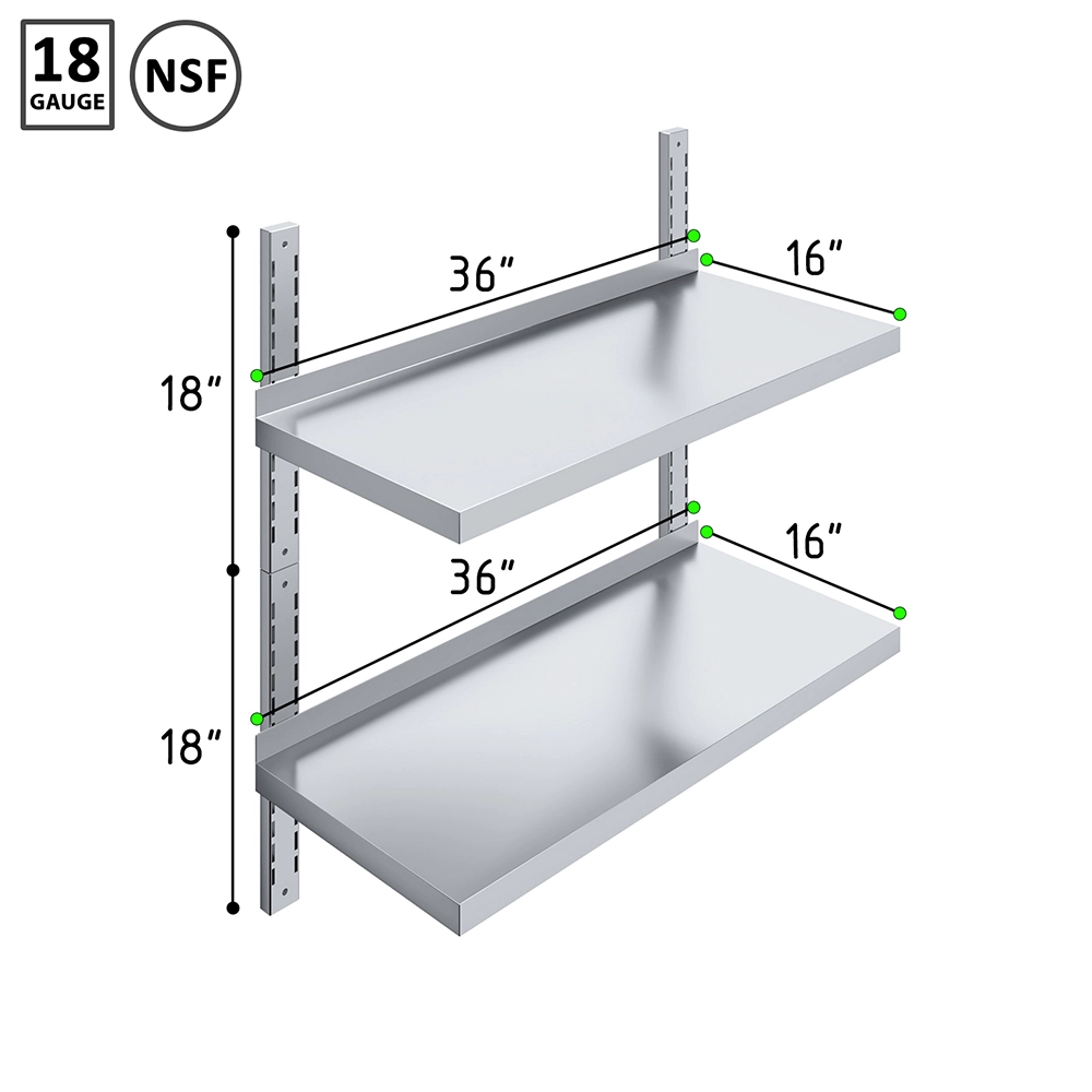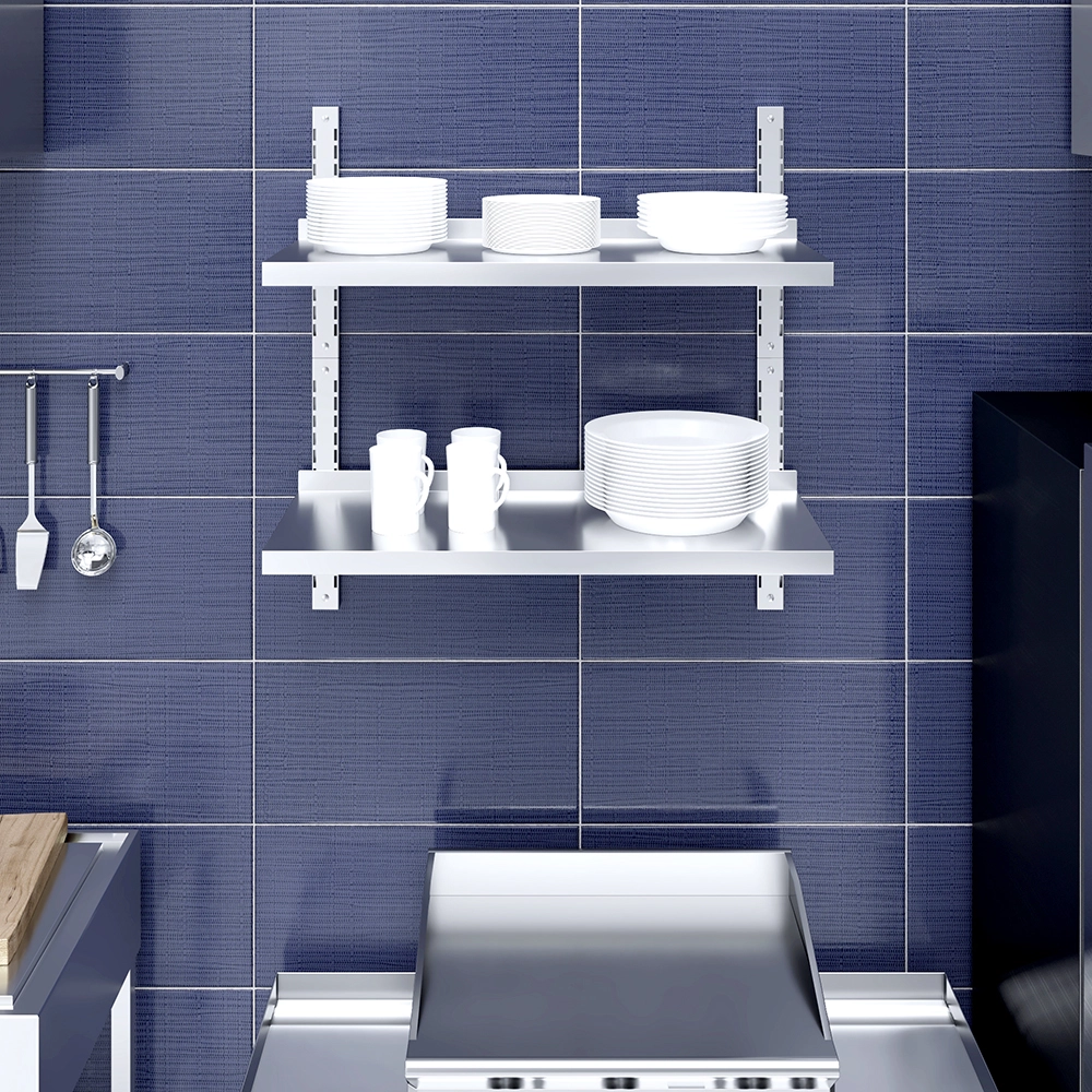 Easy to install, this wall-mounted shelf comes with all the necessary hardware for secure attachment, ensuring stability and peace of mind. Its sleek, modern appearance features clean lines and a polished finish that blends seamlessly into any environment, from contemporary kitchens to industrial-style workshops. The open design allows for easy visibility and access to items, further enhancing convenience and efficiency.