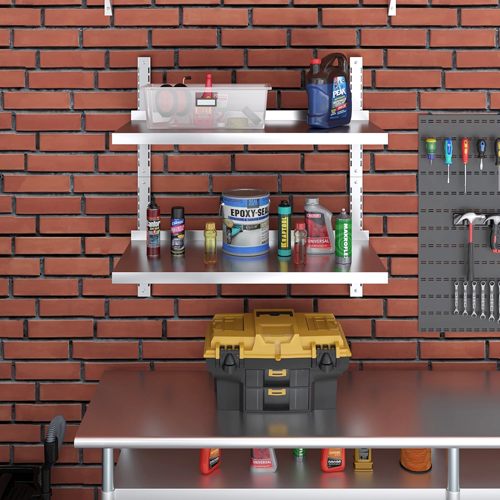 Upgrade your storage with the 16 in. x 36 in. Two-Tier Metal Wall Mount Shelf. Combining durability, versatility, and a modern aesthetic, it’s the perfect addition to any space where efficient organization and style are a priority.