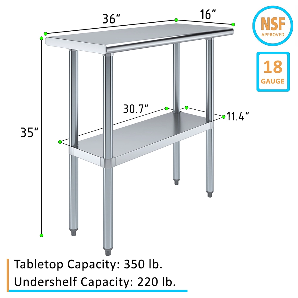 16″ X 36″ Stainless Steel Work Table With Undershelf
