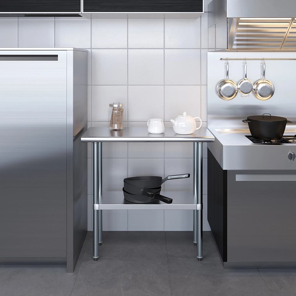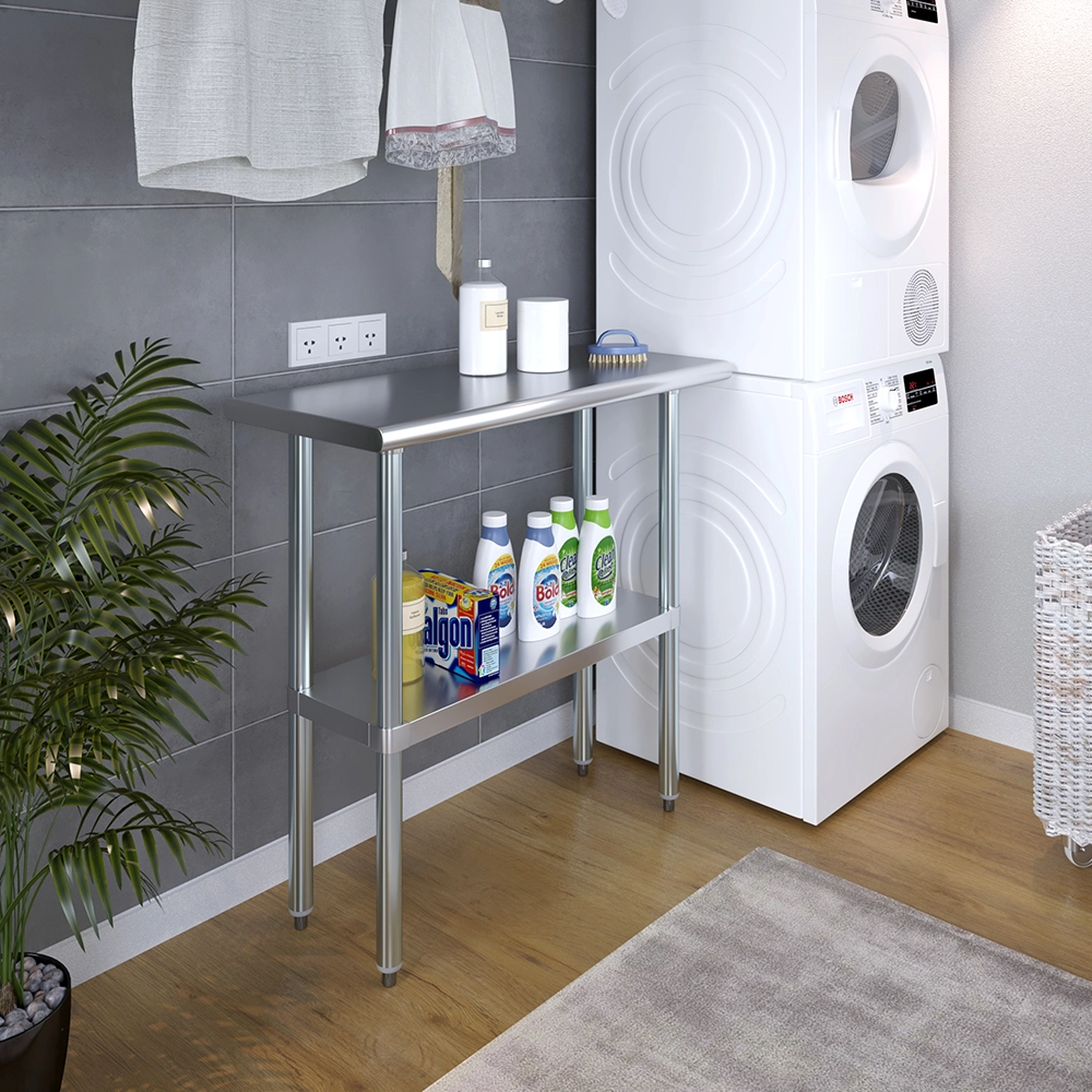 Introducing the 16″ X 36″ Stainless Steel Work Table with Undershelf – a robust and versatile solution for enhancing efficiency and organization in any commercial kitchen, workshop, or utility space. Meticulously crafted from 18GA/430 stainless steel, this work table ensures exceptional durability, resistance and easy maintenance, making it a reliable addition to any professional environment.