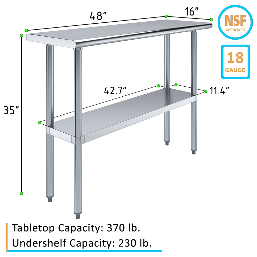 16″ X 48″ Stainless Steel Work Table With Undershelf