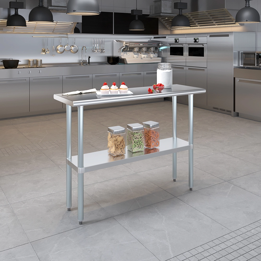 Ideal for a wide range of applications, from commercial kitchens and catering services to laboratories and workshops, the 16″ X 48″ Stainless Steel Work Table with Undershelf is a practical and stylish addition that enhances productivity and organization. Its sleek, professional appearance complements any setting, while its durable construction guarantees long-lasting performance.