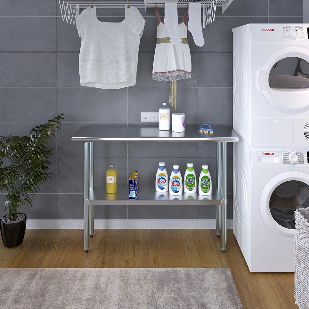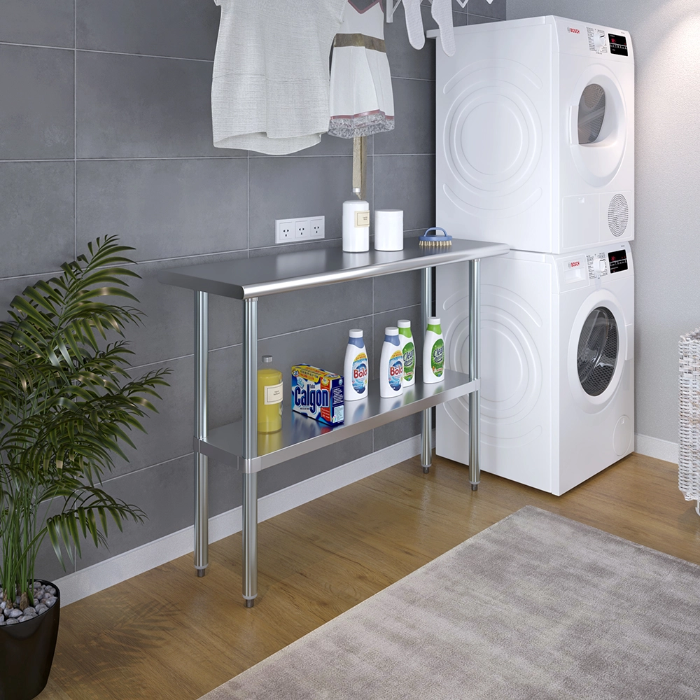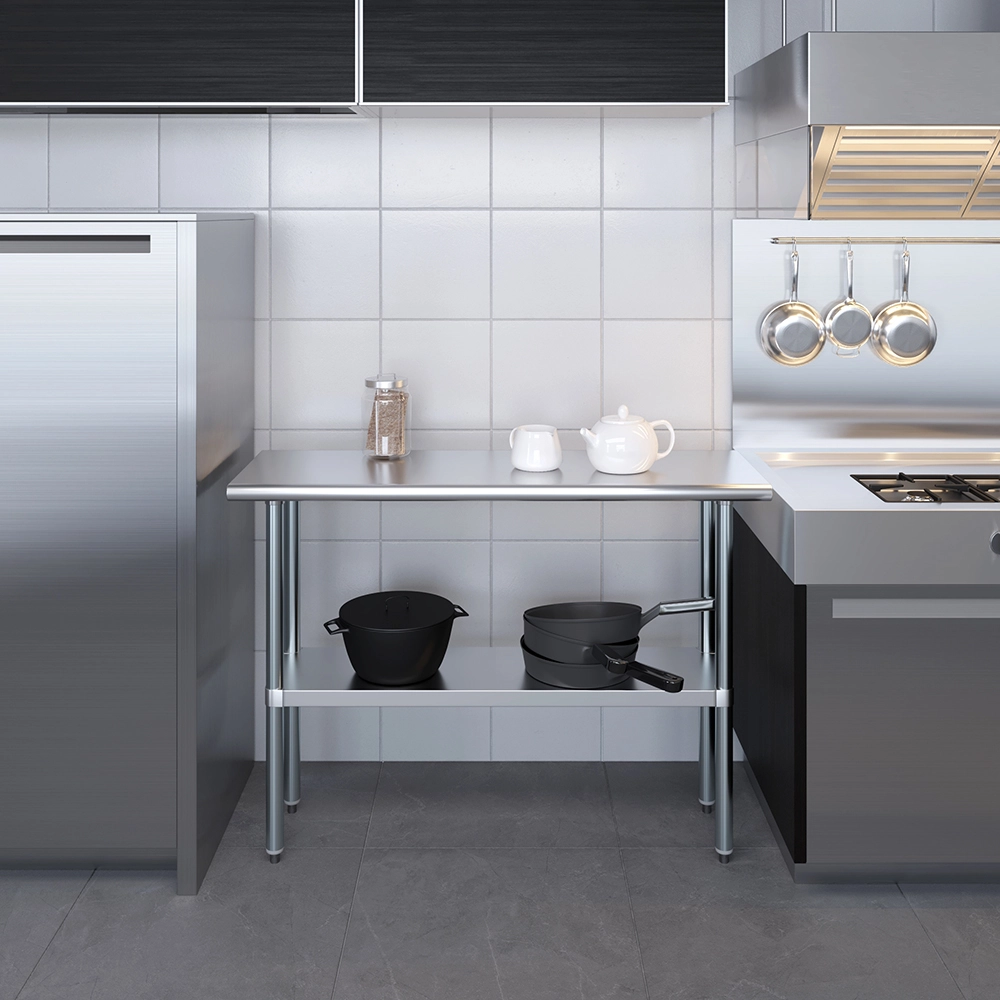 Introducing the 16″ X 48″ Stainless Steel Work Table with Undershelf – a robust and versatile solution for enhancing efficiency and organization in any commercial kitchen, workshop, or utility space. Meticulously crafted from 18GA/430 stainless steel, this work table ensures exceptional durability, resistance and easy maintenance, making it a reliable addition to any professional environment.