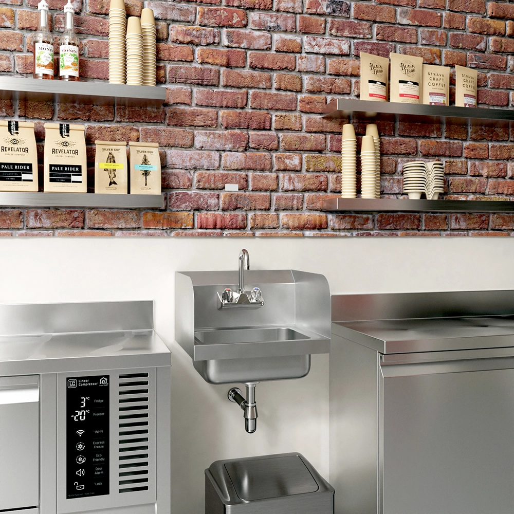 Crafted from 20GA/304 stainless steel, this sink offers superior resistance, ensuring long-lasting performance and easy maintenance. The 17″ X 15″ size provides ample space for efficient hand washing, while the wall-mounted design helps save valuable floor space and keeps your work area organized.