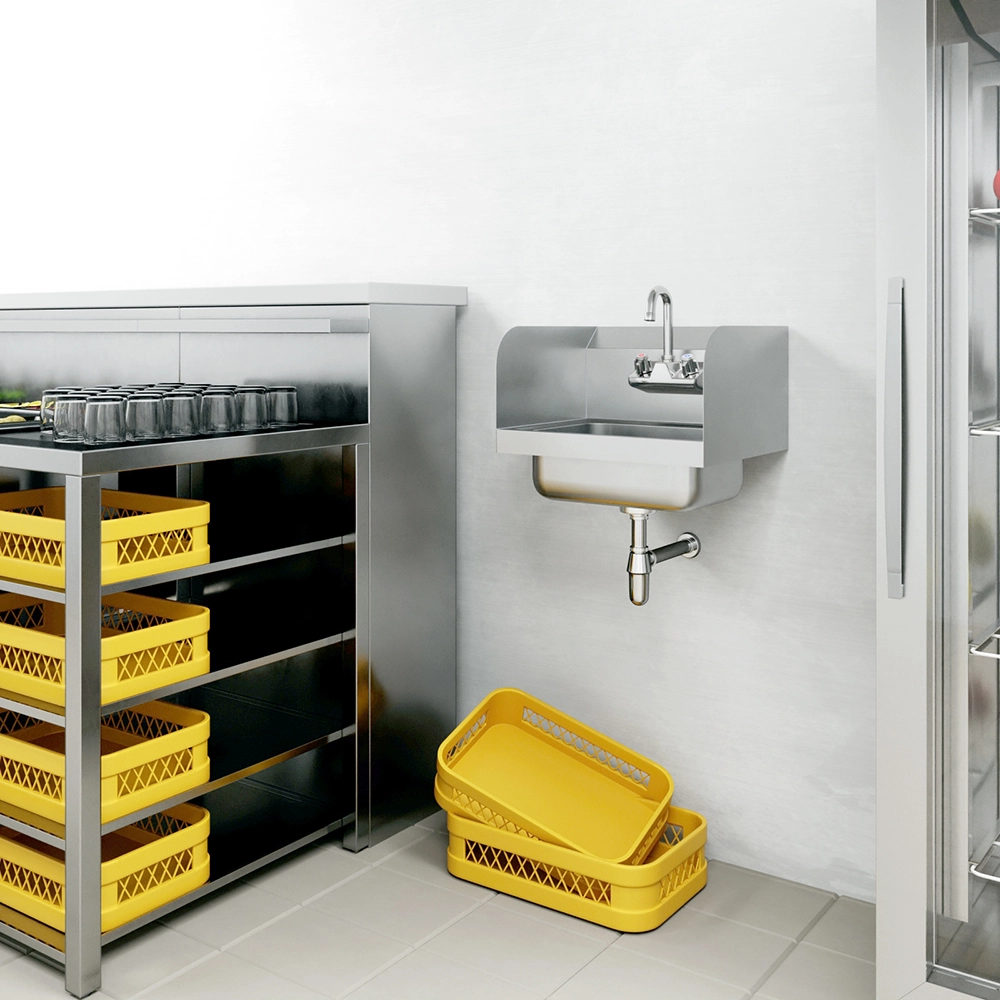 Upgrade your facility with our 17″ X 15″ Stainless Steel Wall Mount Hand Sink, complete with a gooseneck faucet and sidesplash. This versatile sink is designed to meet the rigorous demands of commercial kitchens, food prep areas, and industrial settings, combining durability with functionality.