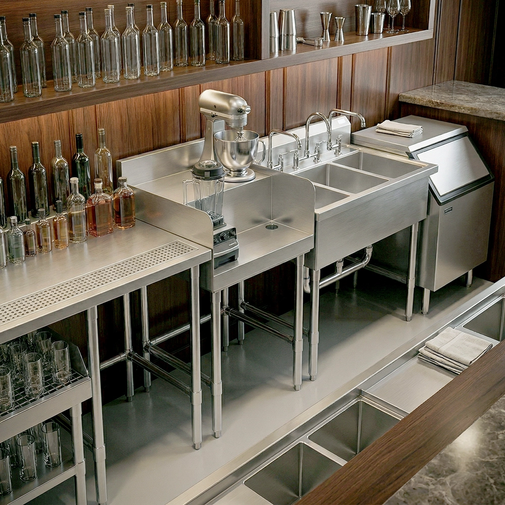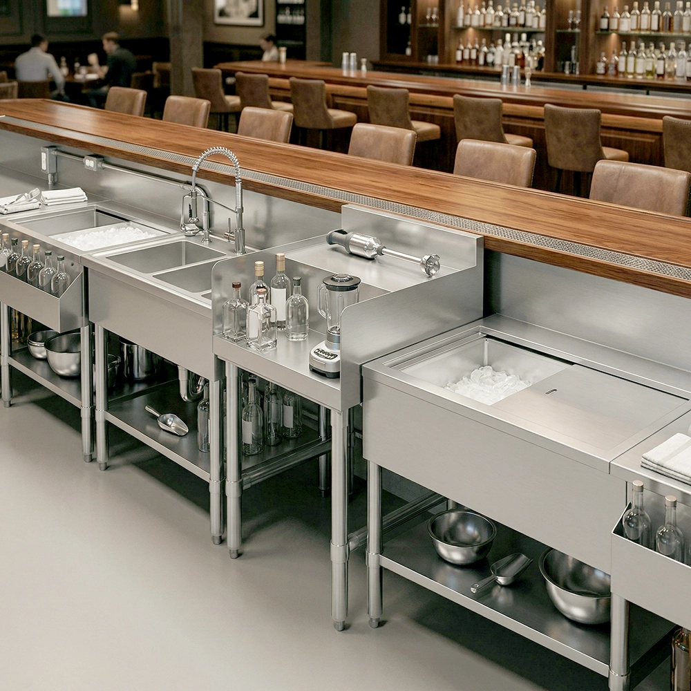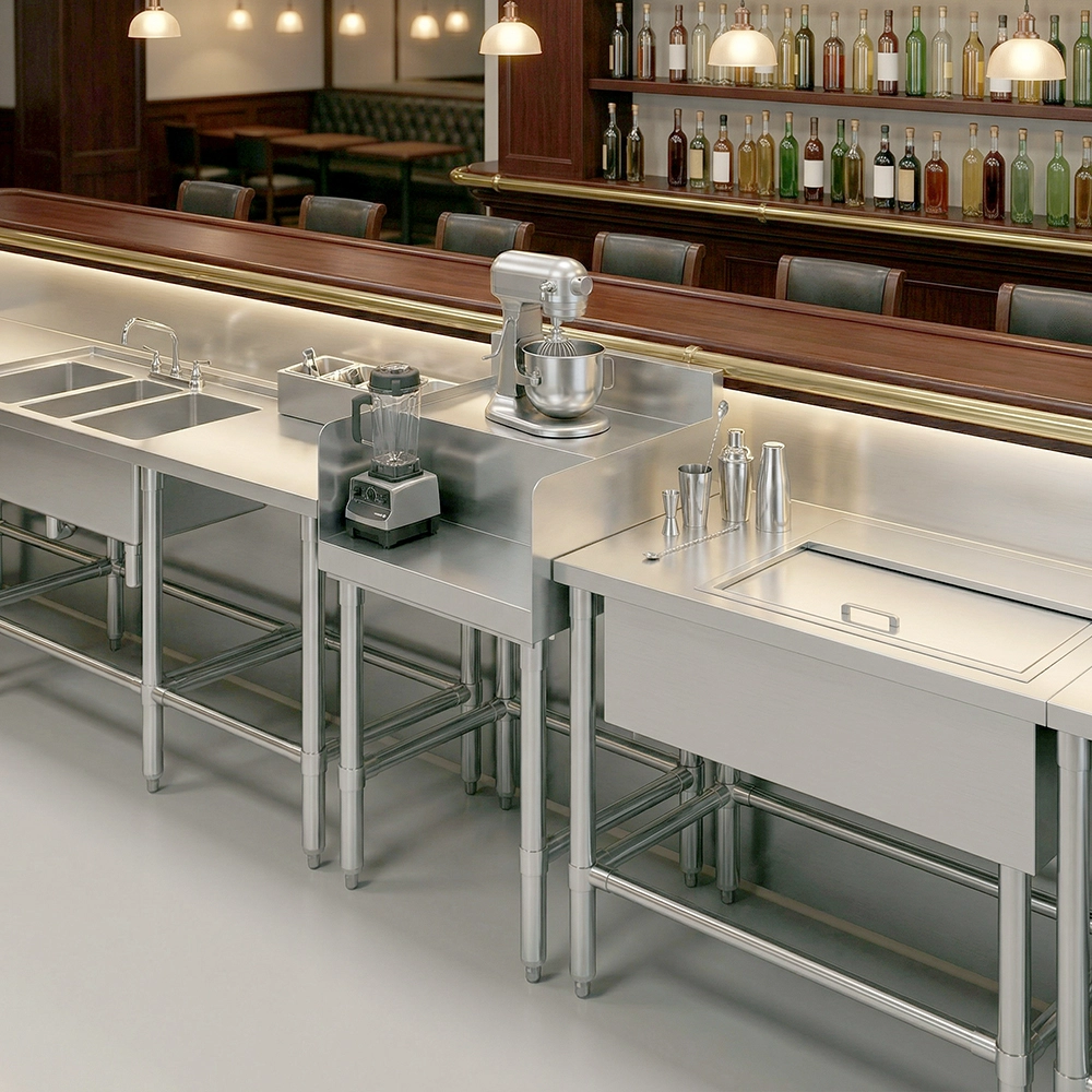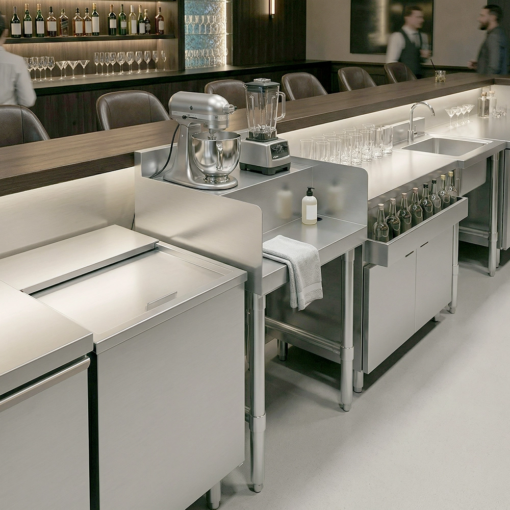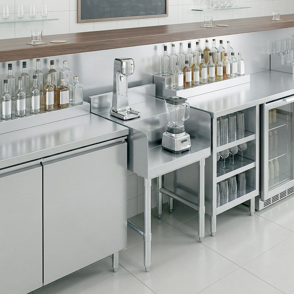 Constructed from high-quality stainless steel, this blender station offers excellent durability, corrosion resistance, and long-lasting performance under heavy daily use. The smooth surface is easy to clean and maintain, supporting proper sanitation standards. Its sturdy build helps reduce vibration and ensures consistent performance when operating blending equipment.