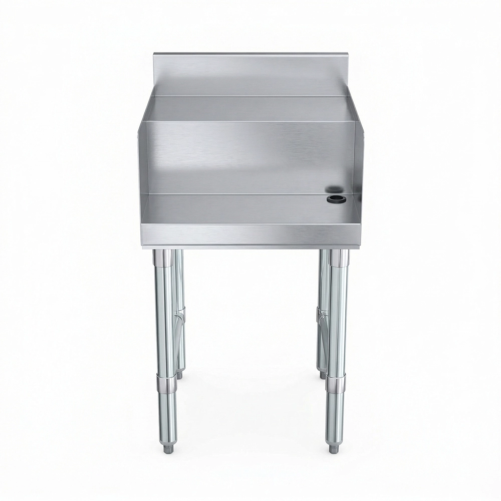18-1/2 in. x 18 in. x 30 in. Underbar Stainless Steel Blender Station Flat Top is designed to enhance efficiency in busy bar and beverage service environments. The flat top surface provides a stable and reliable platform for blenders, helping ensure smooth operation during peak hours. Its compact underbar design allows it to fit seamlessly into tight workspaces while maximizing available prep area.