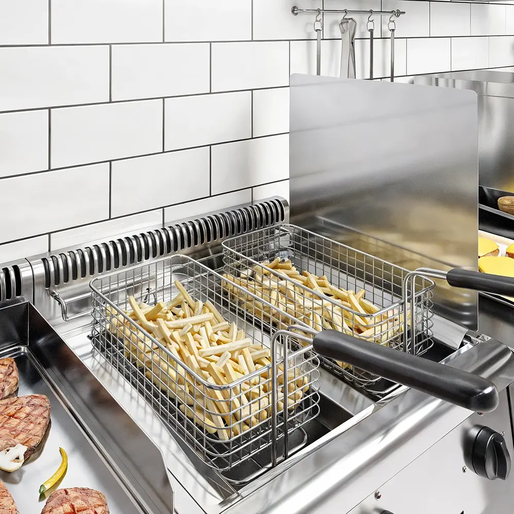 The 18 in. x 20 1/2 in. Stainless Steel Deep Fryer Splash Guard is a practical and durable solution designed to enhance safety and cleanliness in commercial kitchen environments. Constructed from 18GA/304 stainless steel, this splash guard offers excellent resistance to heat, grease, making it ideal for long-term use alongside deep fryers and other high-temperature cooking equipment.