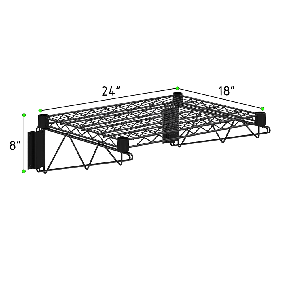 The 18 in. x 24 in. Black Epoxy Wall Mount Wire Shelf is a versatile and durable storage solution designed to optimize space in kitchens, pantries, garages, laundry rooms, and commercial settings. Made from high-quality steel, it features a black epoxy-coated finish that resists rust, corrosion, and wear, ensuring long-term durability. The open-wire design promotes air circulation, preventing dust buildup and keeping stored items fresh and clean.