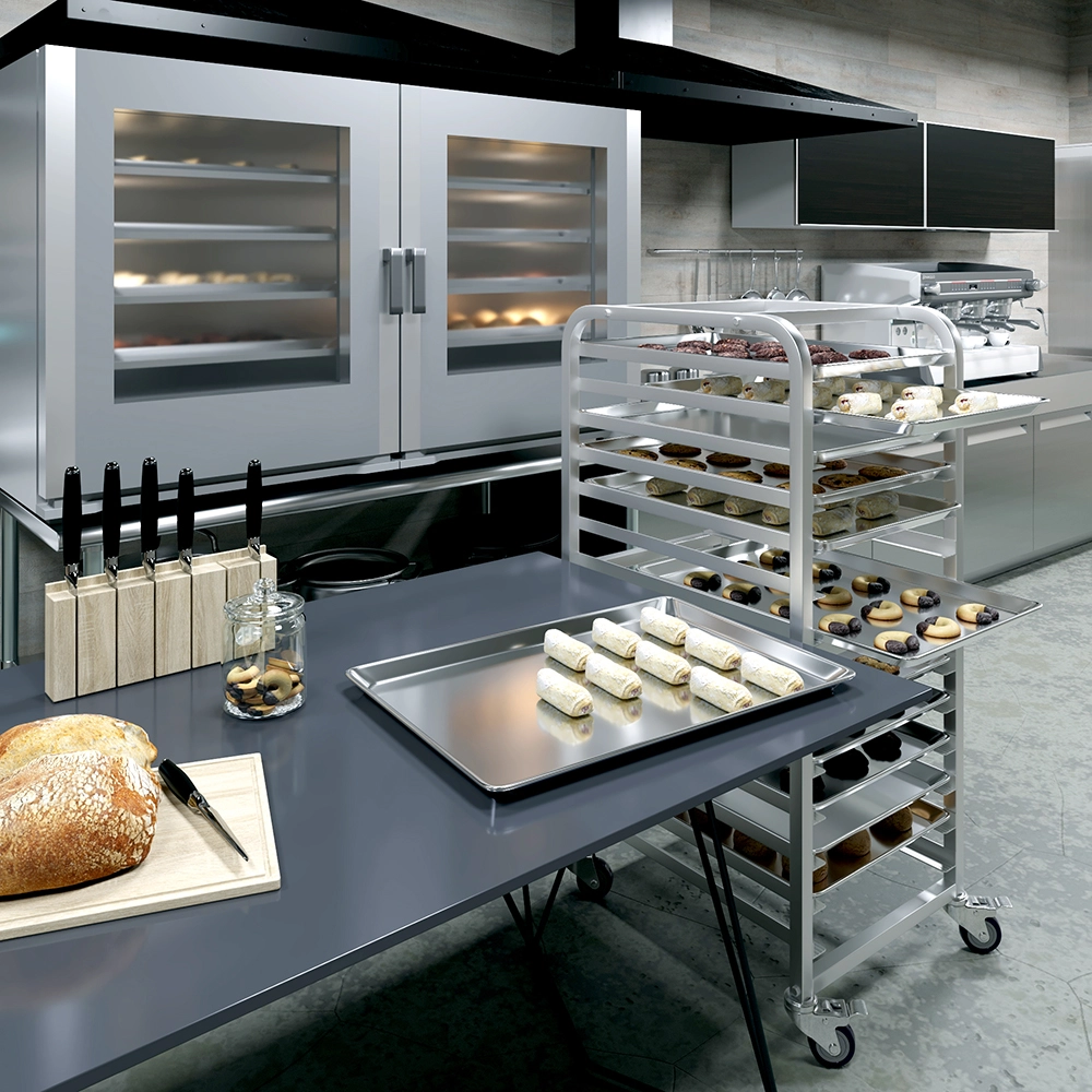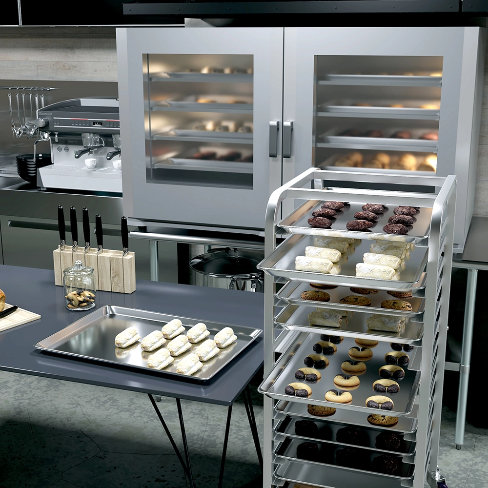 The smooth aluminum surface provides easy food release and simplifies cleanup, saving time during high-volume operations. Designed to fit standard full-size commercial ovens and racks, these pans are perfect for bakeries, restaurants, cafés, catering services, and institutional kitchens. Sold as a pack of twelve, they allow for simultaneous batch preparation, efficient multitasking, and high-output production. Combining durability, reliability, and professional-grade performance, this set of full-size aluminum sheet pans is an essential tool for any commercial food-service environment, helping streamline workflow and maintain consistent baking quality.