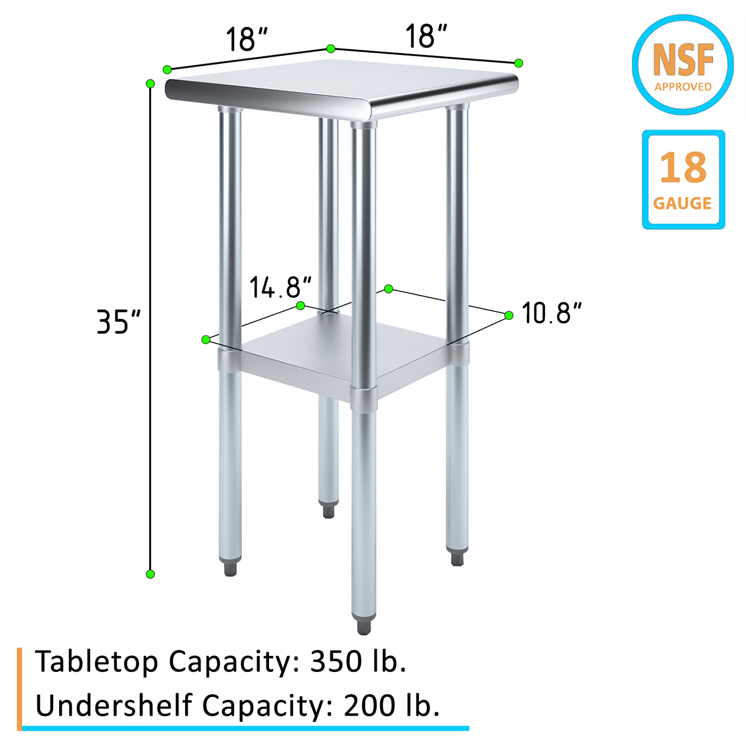 18″ X 18″ Stainless Steel Work Table With Undershelf