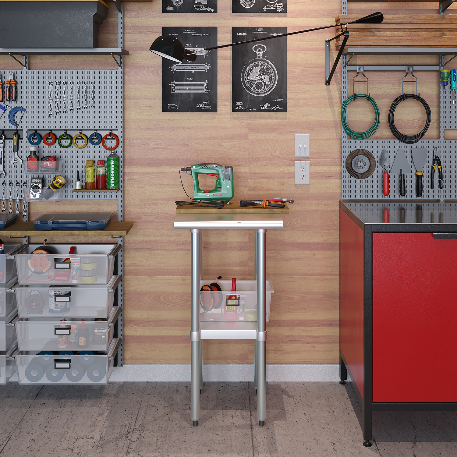 Designed for stability and convenience, this work table features sturdy legs that provide robust support, ensuring the table remains steady during use. The legs are equipped with adjustable bullet feet, allowing for level placement on uneven floors and ensuring a secure and stable work surface. Easy assembly means you can quickly integrate this table into your existing setup without hassle.