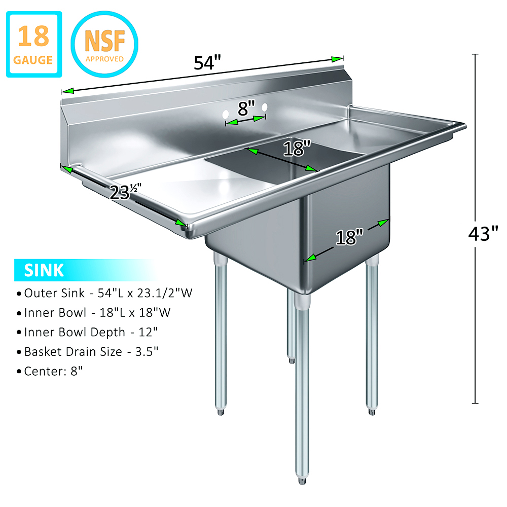 As a professional chef, having the right equipment in the kitchen is essential, and this 18″ X 18″ X 12″ stainless steel commercial prep and utility sink has been a game-changer. The design with 18″ left and right drainboards is incredibly practical, providing ample space for drying dishes and prepping ingredients without clutter.