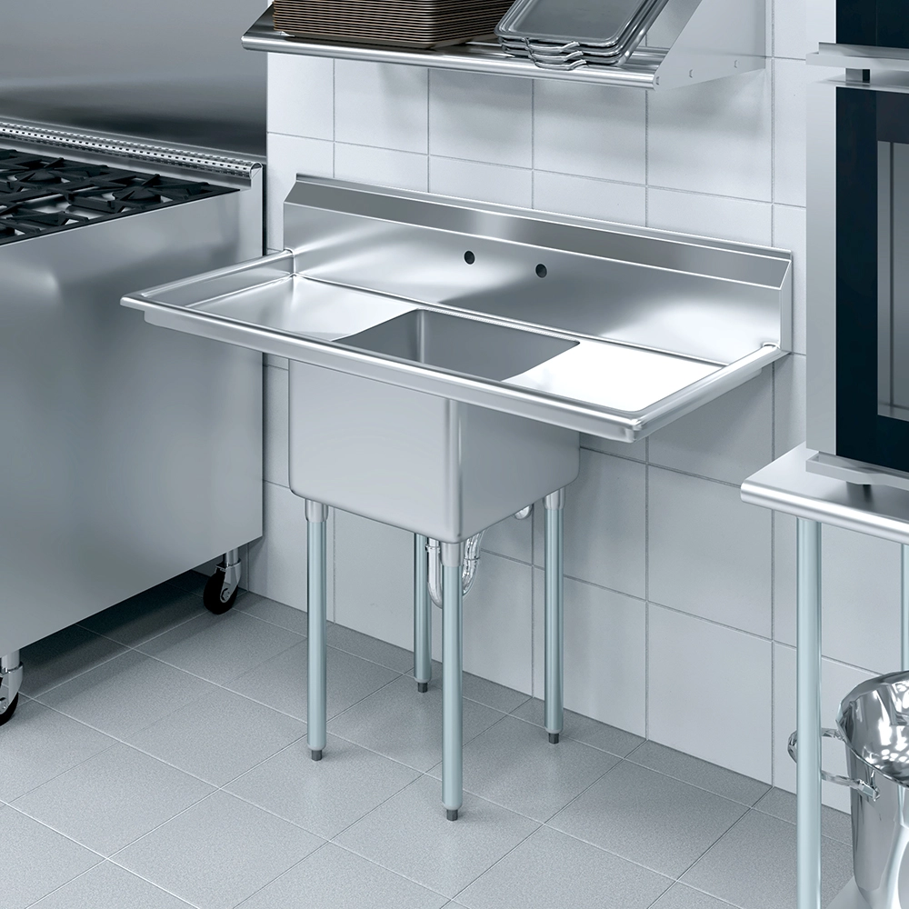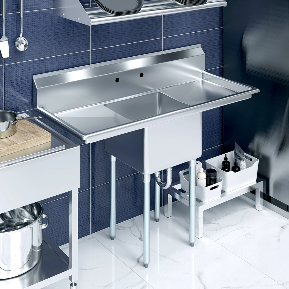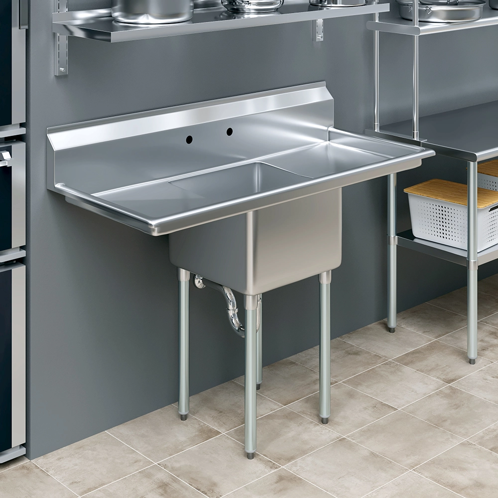 The sink’s construction is robust, made from stainless steel that feels solid and durable. It’s easy to clean and maintain, which is a huge plus in a busy kitchen environment. The one-compartment design is perfect for handling a variety of tasks, from washing vegetables to cleaning utensils, making it versatile and efficient.