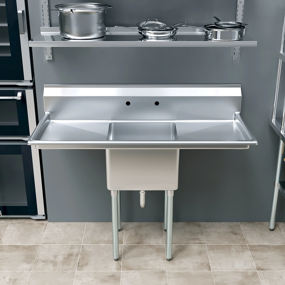 Whether you are upgrading your current setup or designing a new workspace, the 18″ X 18″ X 12″ One Compartment Stainless Steel Commercial Prep & Utility Sink with 18” Left and Right Drainboards is an excellent choice that combines practicality, durability, and style. Elevate your commercial kitchen or utility area with this indispensable piece of equipment, designed to meet the demands of any busy environment while providing flexibility and efficiency.