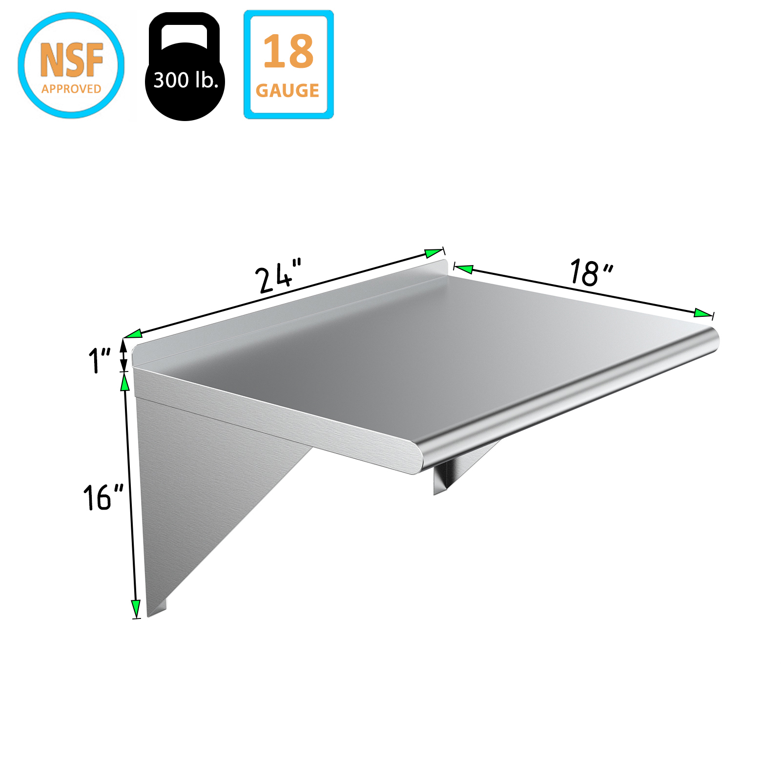 Installation is straightforward with the included mounting hardware, allowing you to securely attach the shelf to any wall surface. The smooth surface is easy to clean, making maintenance a breeze. Whether you need extra storage in your home or a reliable shelving option for your business, our 18″ X 24″ Stainless Steel Wall Mount Shelf is the ideal choice.