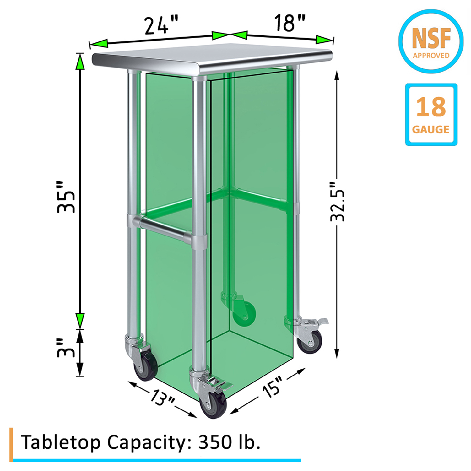 18″ X 24″ Stainless Steel Work Table With Open Base & Wheels