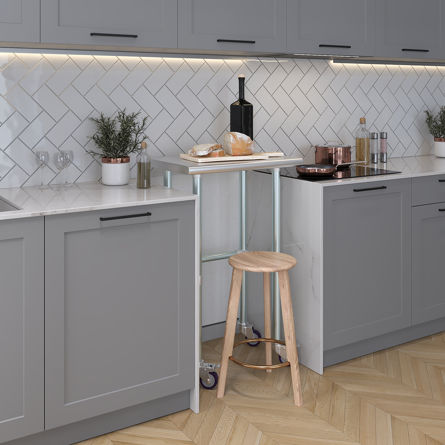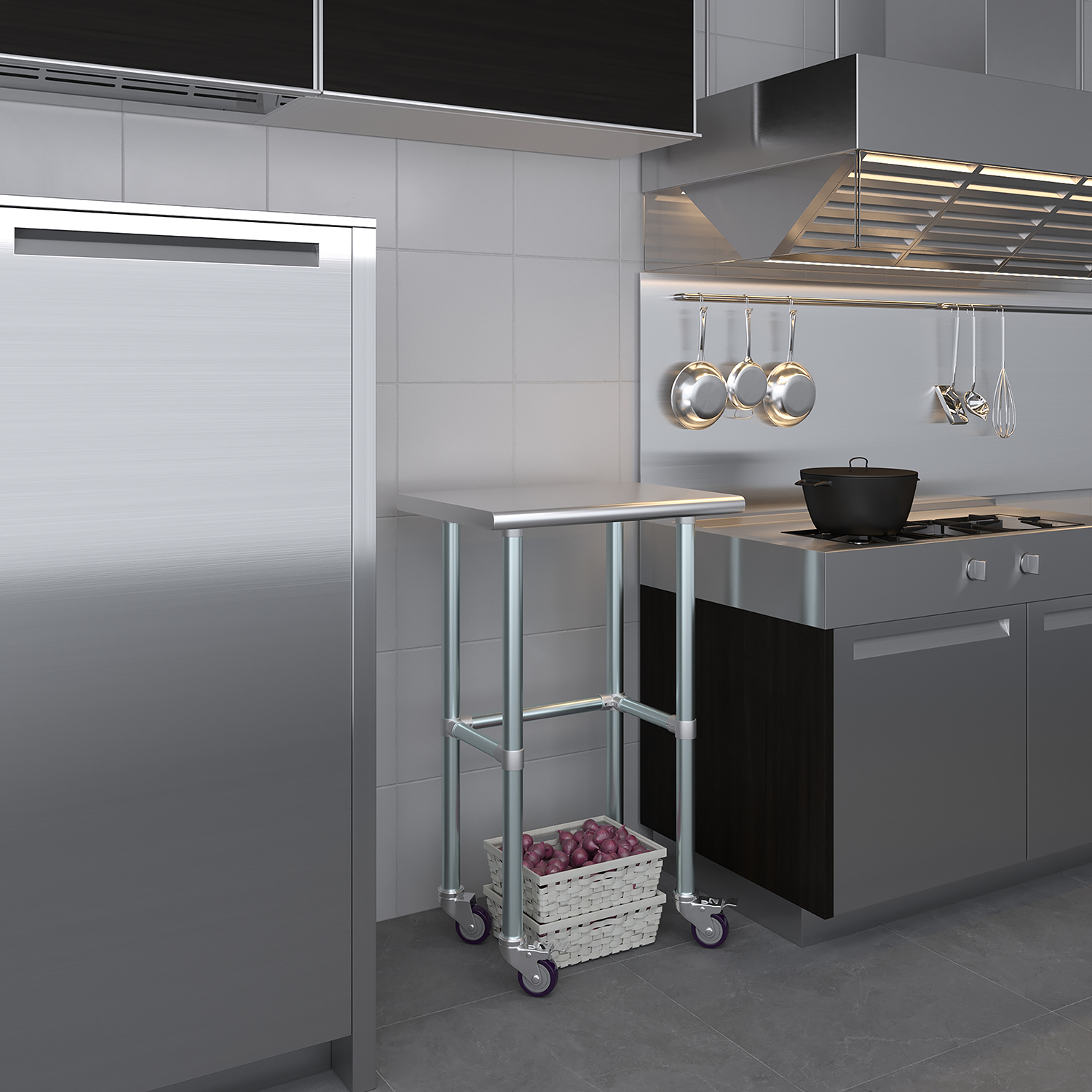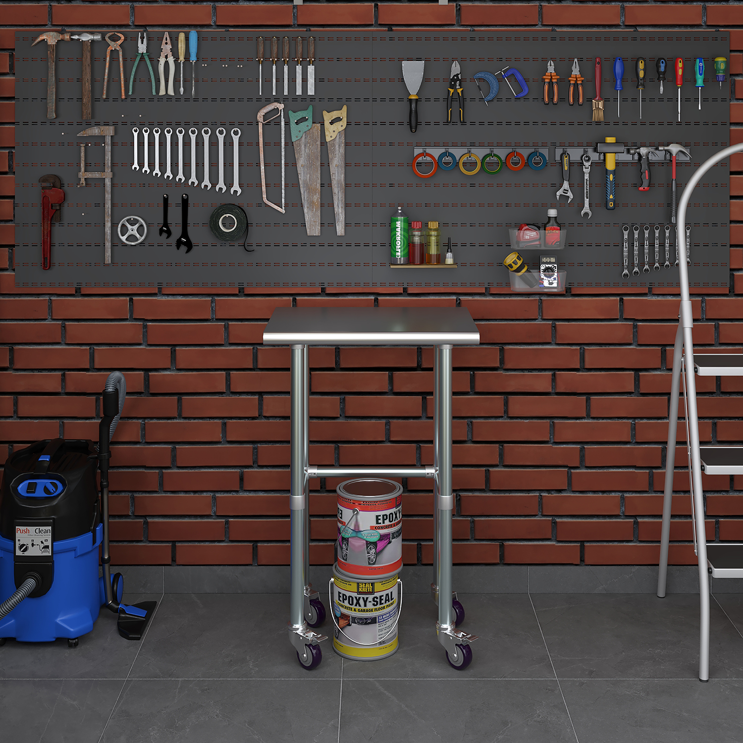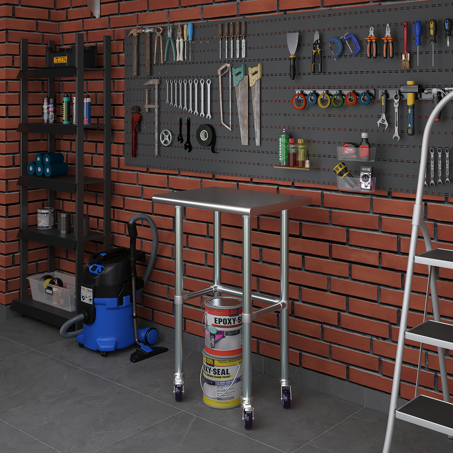 The compact dimensions of 18 inches by 24 inches make this work table an excellent choice for smaller spaces while still providing a robust and functional workspace. Despite its compact footprint, the table offers ample space for a variety of tasks, from food preparation and assembly work to scientific experiments and crafting projects.